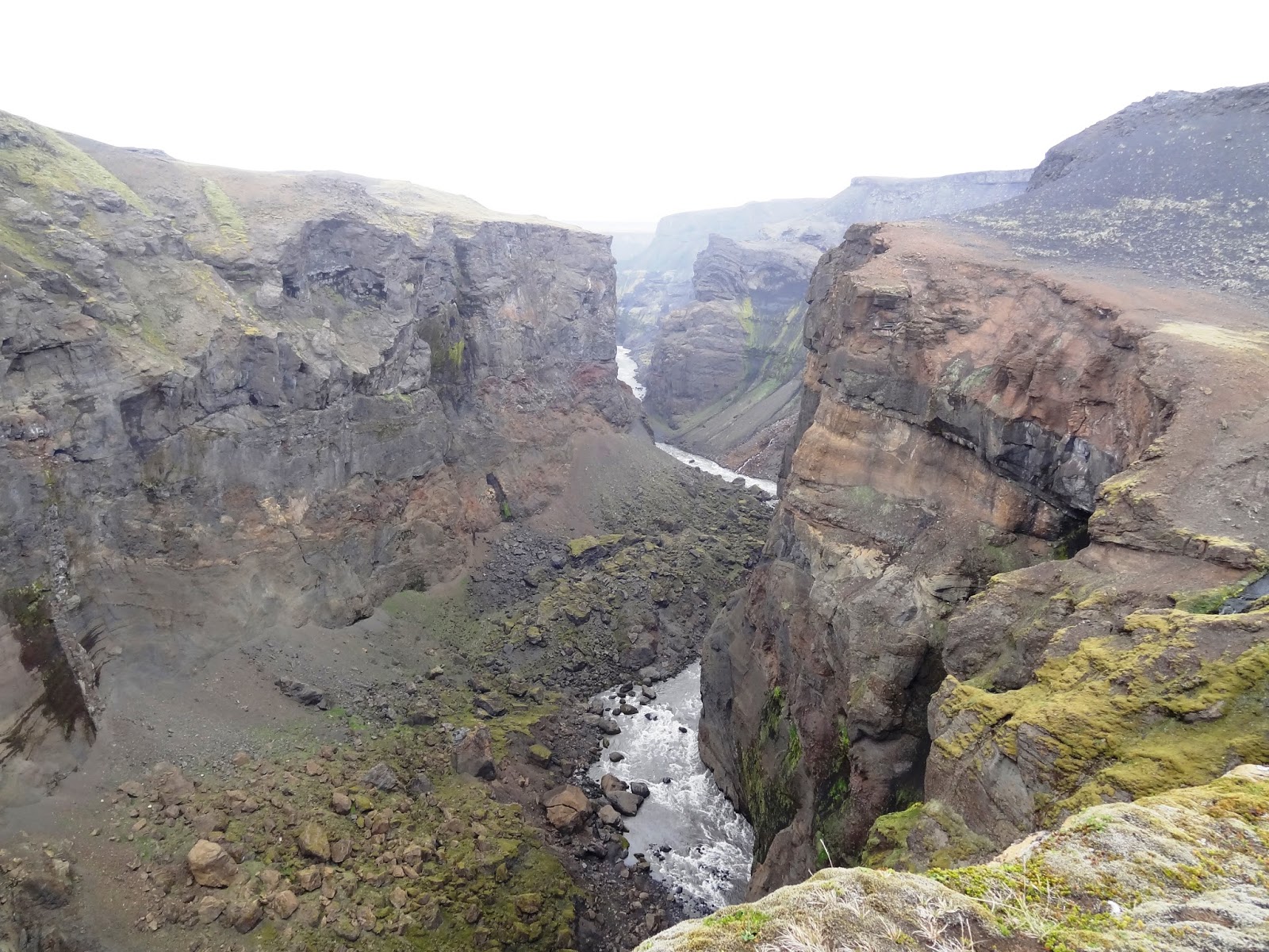| Espectacular cañón de Markarfljótsgljúfur. Un pequeño regalo para la vista a tan solo unos minutos caminando del refugio. |