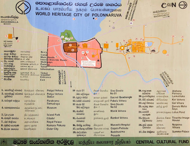 En primer lugar nos acercamos al punto de información, situado en la entrada del museo, donde compramos las entradas (25$ o 3750 rupias por persona). Se encuentra próximo al gran embalse de Parakrama Samudraya, cuya construcción se inició hace más de 1500 años.