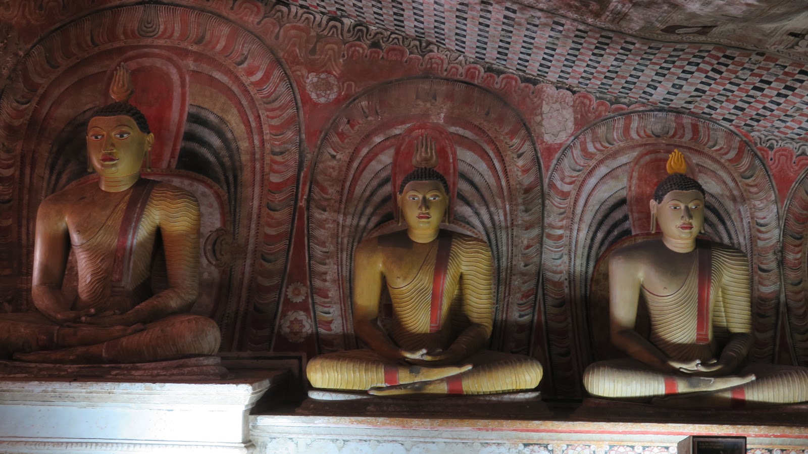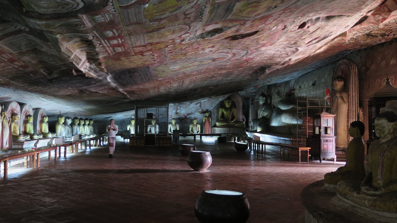 Las cuevas son Patrimonio de la Humanidad desde 1991, y realmente se han ganado dicho galardón por méritos propios. Son en total unas 80 cuevas, aunque las que podemos visitar son solo cinco; cuya historia se remonta al siglo I a.C. Todas ellas están llenas de estatuas de Buda (153 en total), mientras que las paredes y techos son enormes murales con pinturas detalladísimas, en las que se narran escenas de la vida de Buda y otros acontecimientos importantes en la historia de Sri Lanka.