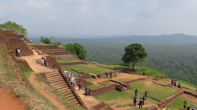 La impresionante terraza superior de la gran roca está formada por restos de antiguos templos, palacios y estanques; resulta muy agradable subir y bajar por las escaleras de las ruinas, o simplemente sentarse a disfrutar de las increíbles vistas en todas direcciones. Un lugar mágico.