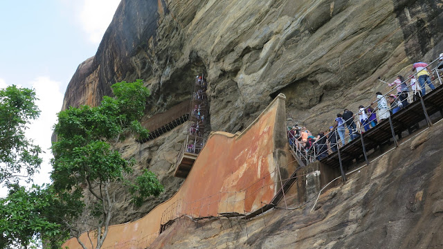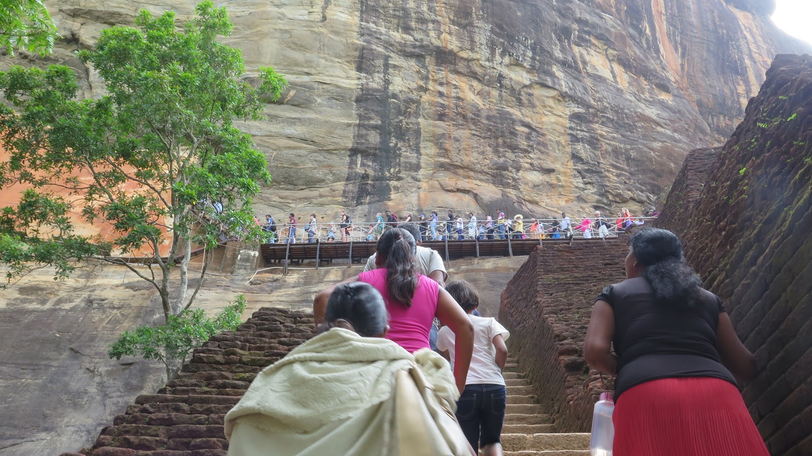 30$ por cabeza, sabemos que es caro, pero también sabemos que merecerá la pena. Una vez mostramos la entrada en el pequeño punto de control, tenemos la gran roca enfrente, de la que nos separa un camino atestado de viajeros y locales. El lugar más concurrido de todos los que hemos visitado en Sri Lanka, sin duda.