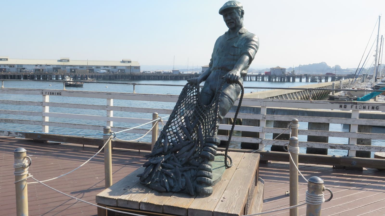 Escultura en homenaje a los pescadores, en el muelle de Monterey.