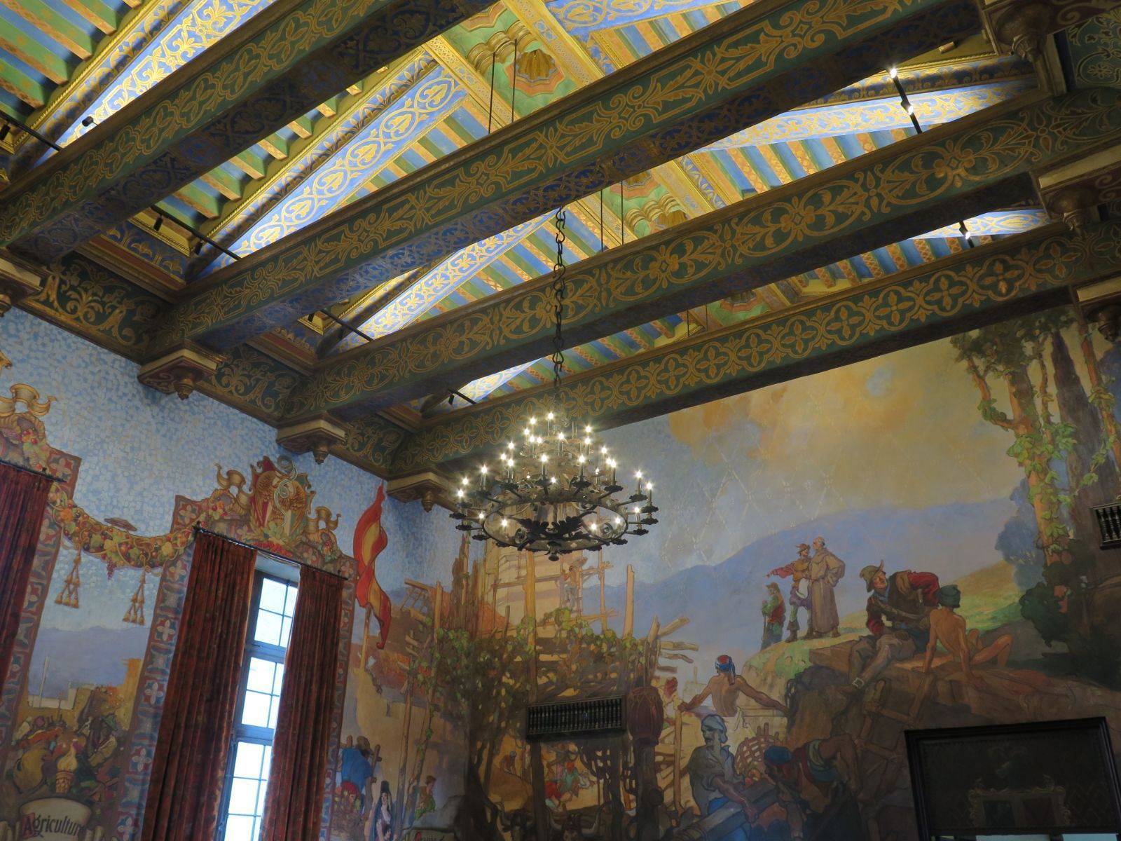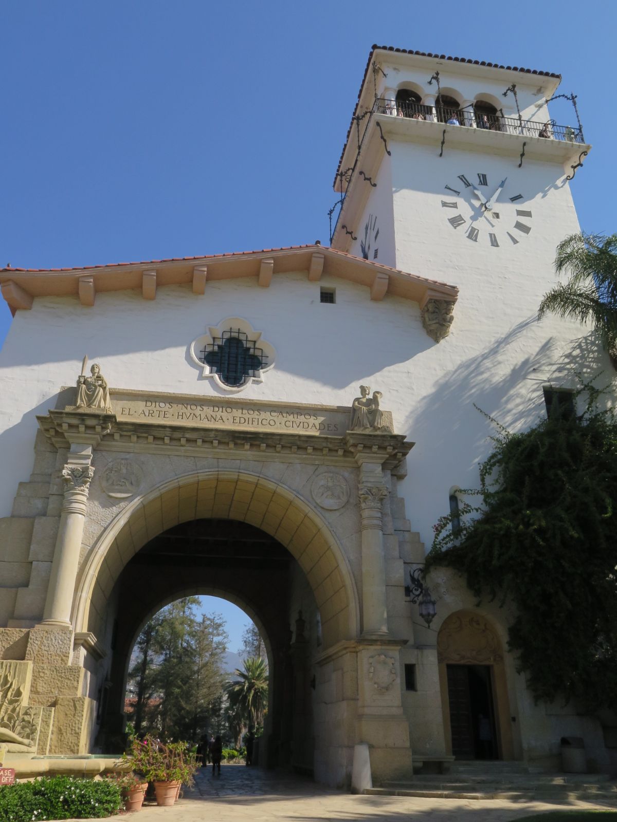 Entramos a visitar el Santa Barbara County Courthouse; es decir, el juzgado del condado. Se trata de un edificio construido en 1929 en estilo colonial, que puede visitarse libremente. Los murales de su interior son un auténtico relato histórico. Se puede visitar, asimismo, la torre del reloj, desde la cual se tienen unas buenas vistas de la ciudad.