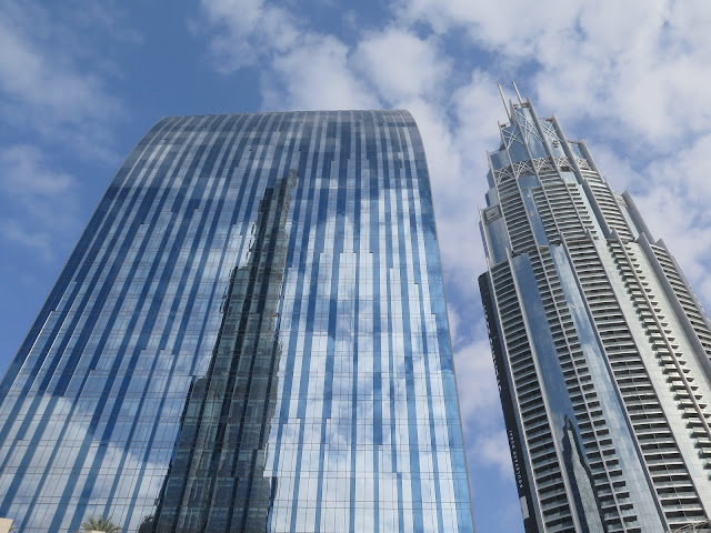 Una vez llegamos a la parada del metro salimos al exterior, por la calle, y nos dirigimos hacia el fabuloso Burj Khalifa, que con sus 828 metros de altura es el edificio más alto del mundo. No tiene pérdida ir hacia allí. Sin embargo, una vez llegamos a sus pies no encontramos la manera de entrar para poder ascender a sus miradores.