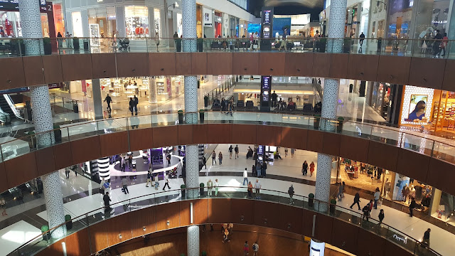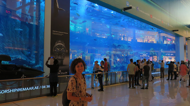 Por ello, afortunadamente, decidimos ir al Dubai Mall. Se trata del centro comercial más visitado y más grande del mundo, lo cual comprobamos enseguida. Pasillos interminables, con centenares de lujosas tiendas. Varias plantas en las que, además de tiendas y restaurantes, podemos encontrar una pista de hielo, un centro médico de lujo y un enorme acuario.