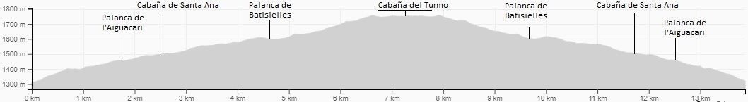 – Máxima: 1756 metros (llegando a la Cabaña del Turmo).