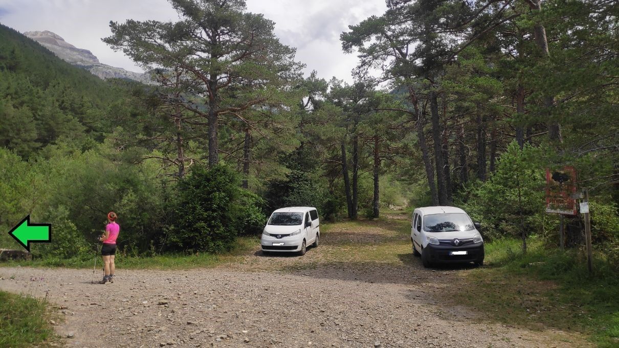 Inicio y fin de la ruta: aparcamiento cerca de la Cueva de las Güixas, ya en las afueras de Villanúa.