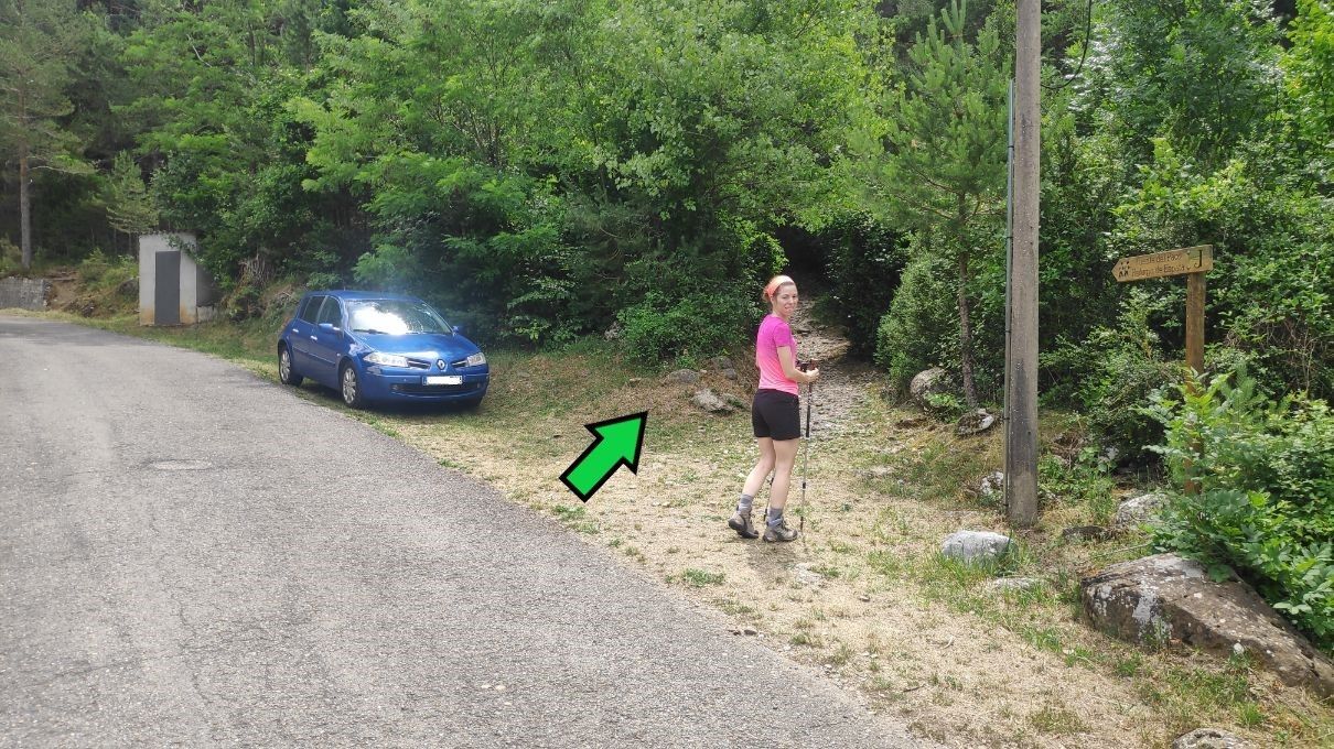 – Aunque proponemos el inicio de la ruta junto al aparcamiento de la Cueva de las Güixas, los primeros 700 metros de camino se pueden realizar en coche y aparcar al lado del desvío al Camino de la Selva, donde hay hueco para dos o tres vehículos.