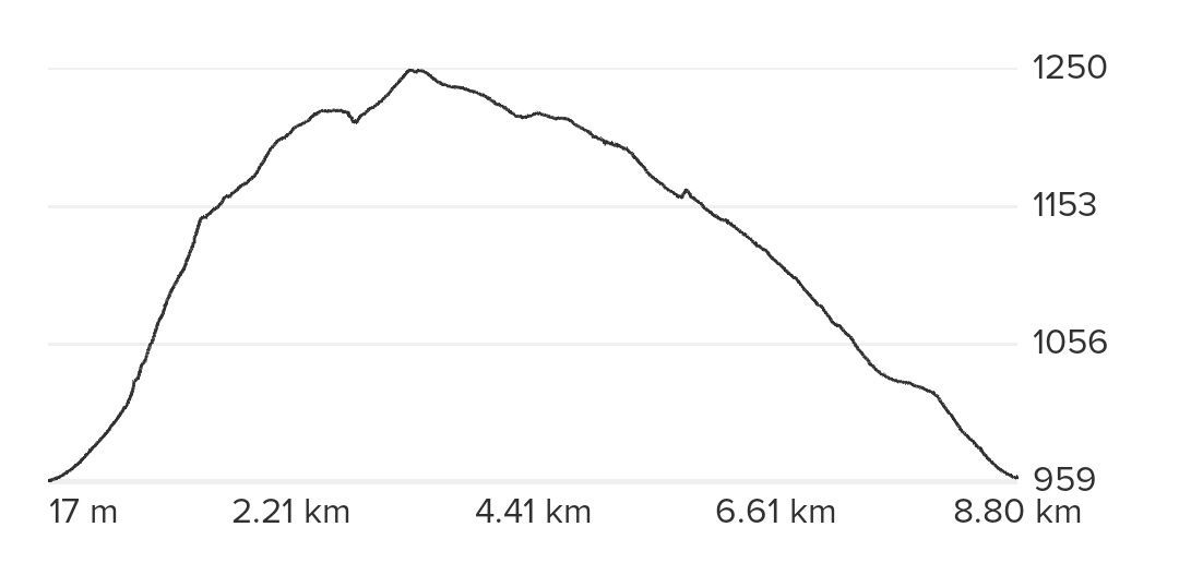 Desnivel acumulado: 303 metros, tanto de desnivel positivo como negativo.