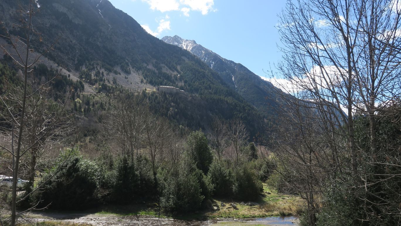Arriba, en lo alto, los Baños de Benasque.