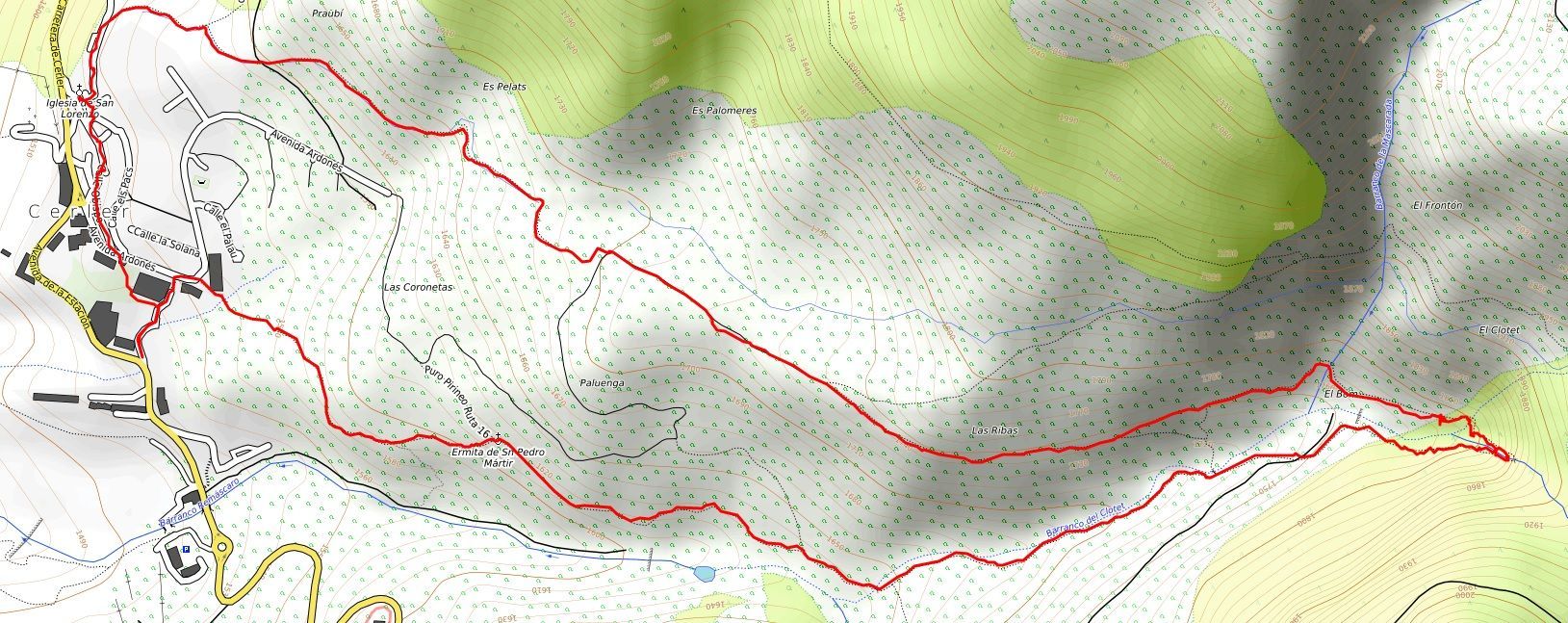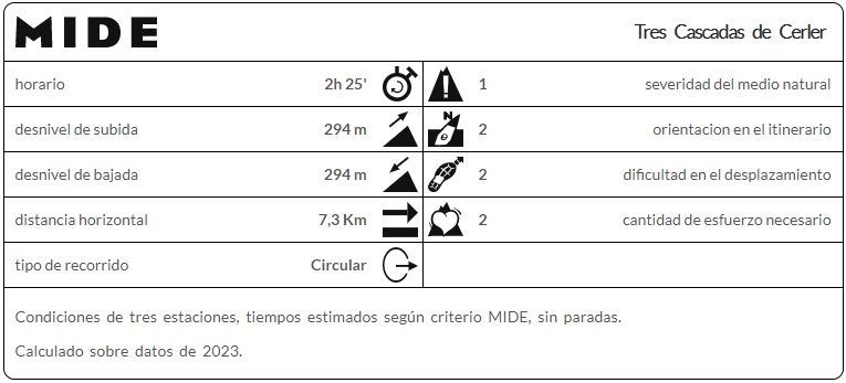 Itinerario: Cerler – Ermita de San Pedro mártir – Puente del Vadiello – Cascada de Ardonés – Cascada del Clotet – Cascada de la Mascarada – Terrazas de Paluenga – Cerler.