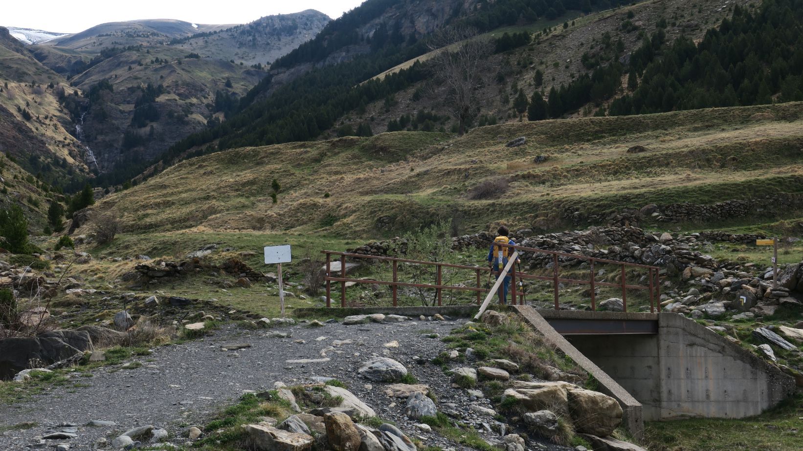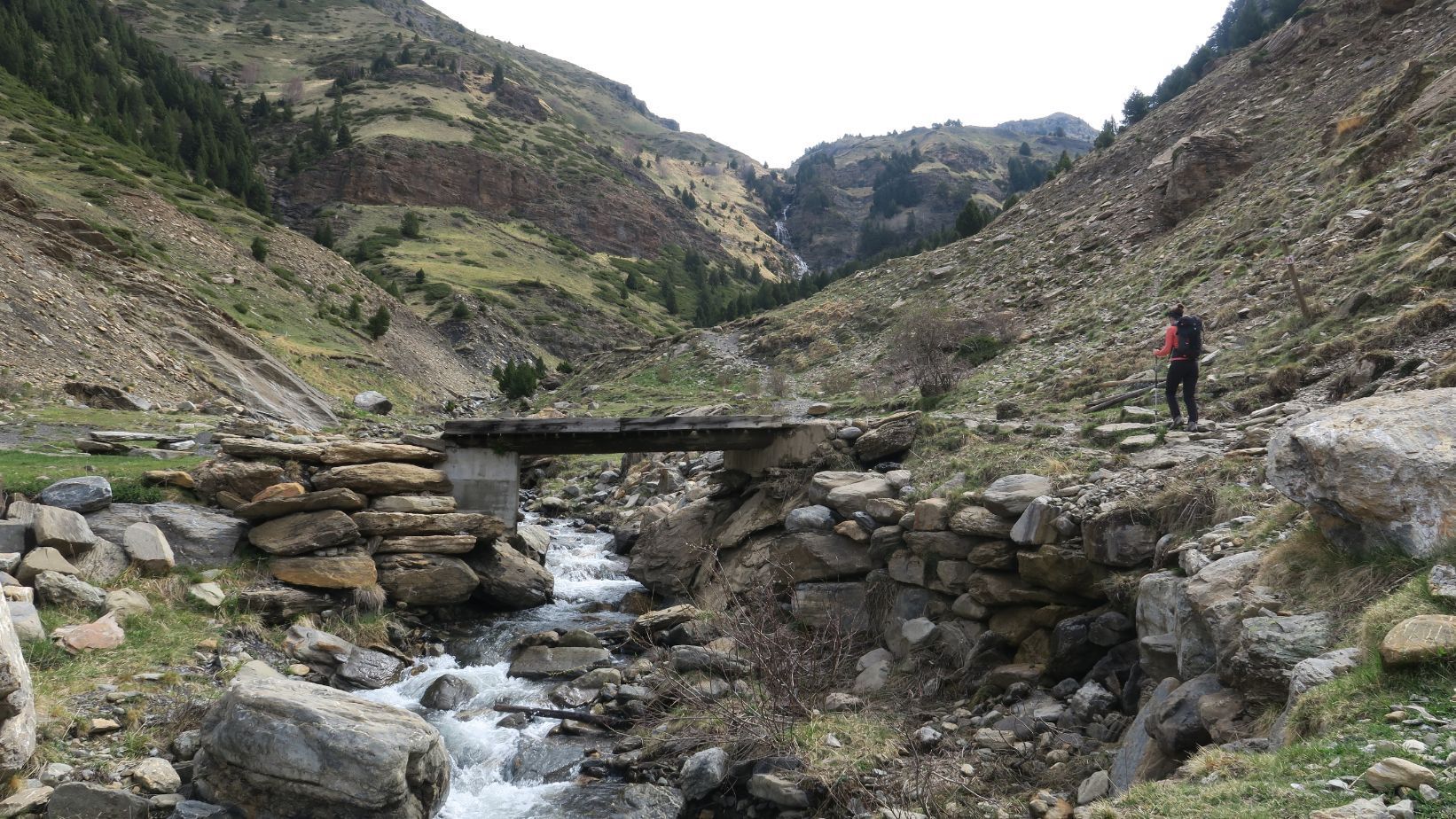 Un tramo más cómodo nos lleva al Puente de Vadiello (1,82 km; 40 mintuos; 1644 metros), casi en el punto en que se juntan los barrancos de Remáscaro y Ardonés. Es aquí donde viramos hacia la izquierda (nordeste), por la margen izquierda de este último.