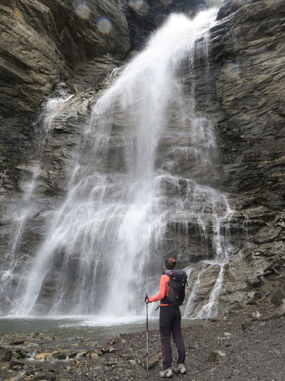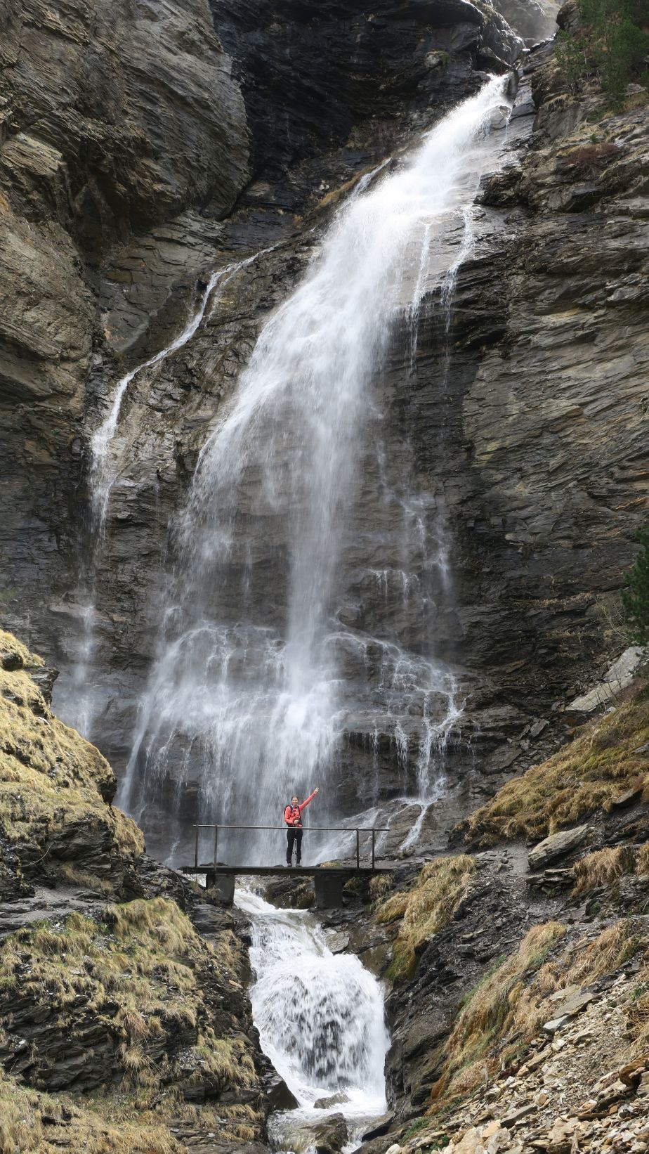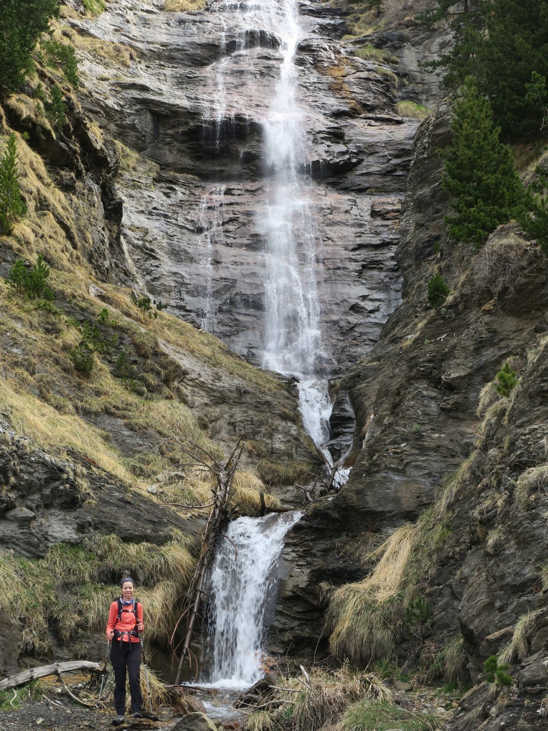 Caminamos esos cincuenta metros y llegamos a la Cascada de Ardonés (3,2 km; 1 hora y 20 minutos; 1798 metros). Las lluvias/nieves de la noche anterior hacen que muestre su mejor cara, ruidosa y espectacular.