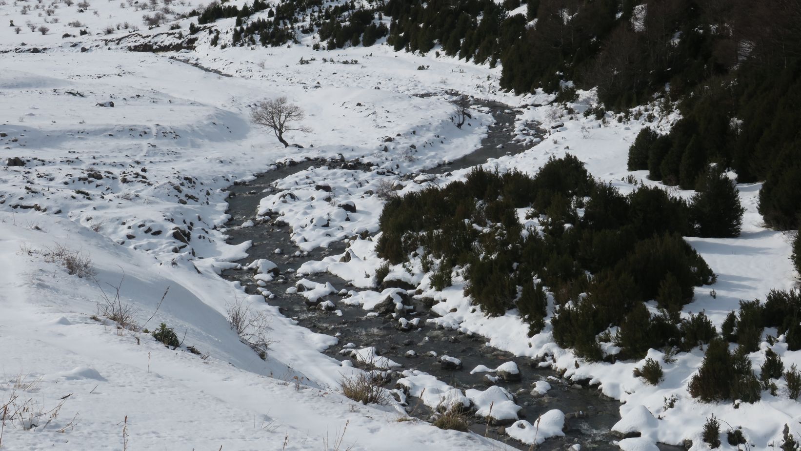 Hay que aprovechar estas nevadas a cota baja, que no se dan muy a menudo. Sin duda mucho mejor subir por la pista con las raquetas, subida suave, cómoda, para disfrutar de tan bello entorno.