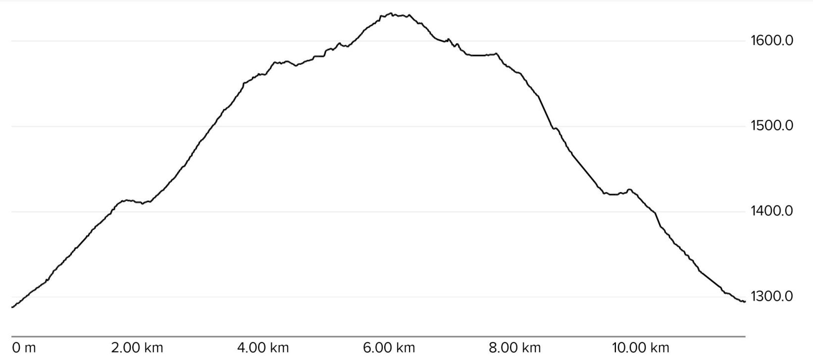 Desnivel acumulado: 360 metros, tanto de desnivel positivo como negativo.