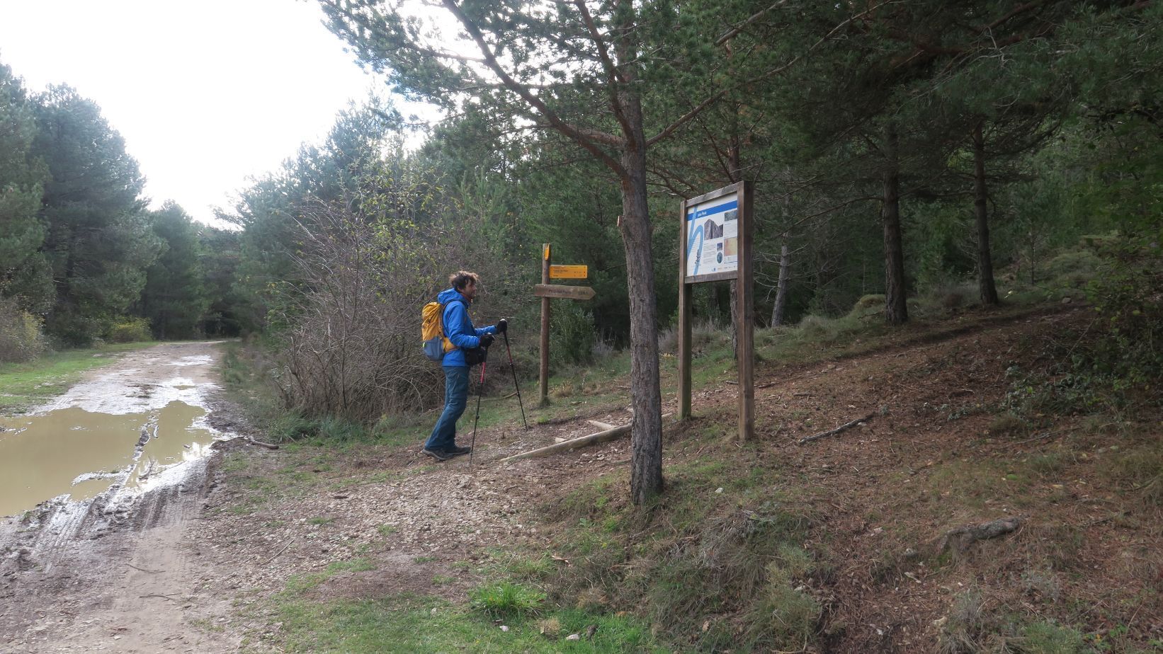 Seguimos por la pista, inicialmente despejada y, posteriormente, entre pinos, hasta alcanzar el desvío, bien señalizado, que nos hace abandonarla y comenzar a caminar por senda (1,1 kilómetros, 16 minutos, 1142 metros de altitud).