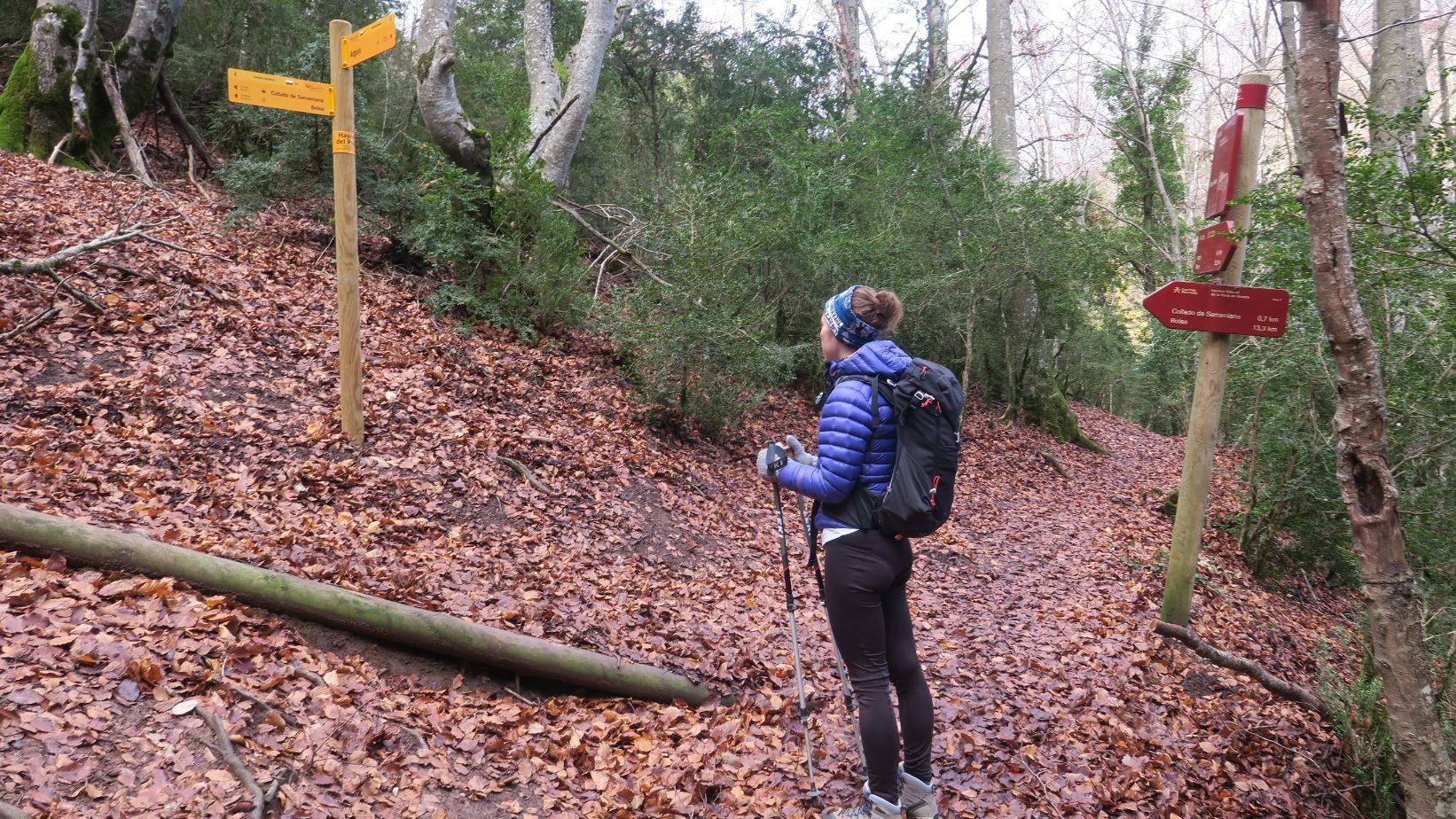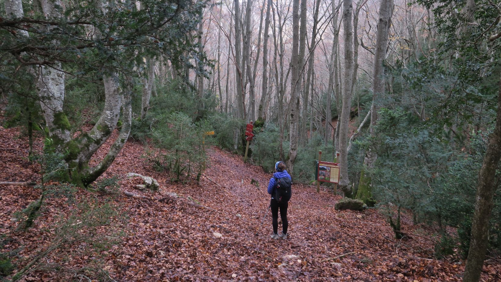 Descendemos por el mismo camino, con precaución porque el terreno está resbaladizo, y llegamos de nuevo al Hayedo de Peiró. Toca tomar ahora rumbo noroeste, siguiendo las indicaciones hacia el Pico Peiró.