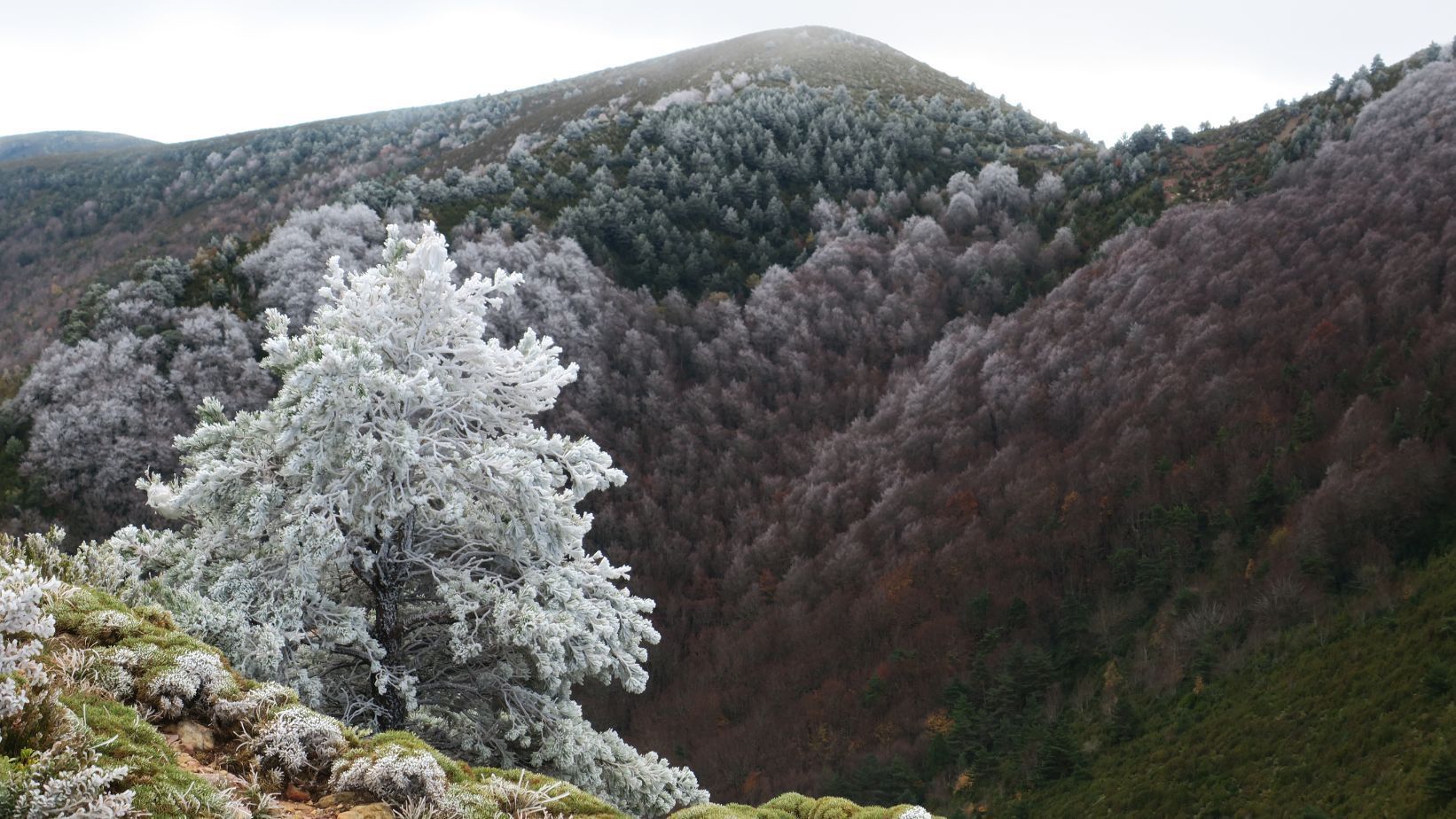 Venimos del collado del fondo, con las copas de los árboles totalmente cubiertas de cencellada.