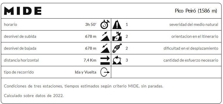 – 2 horas y 20 minutos hasta la cima del Pico Peiró (10 minutos de descanso).