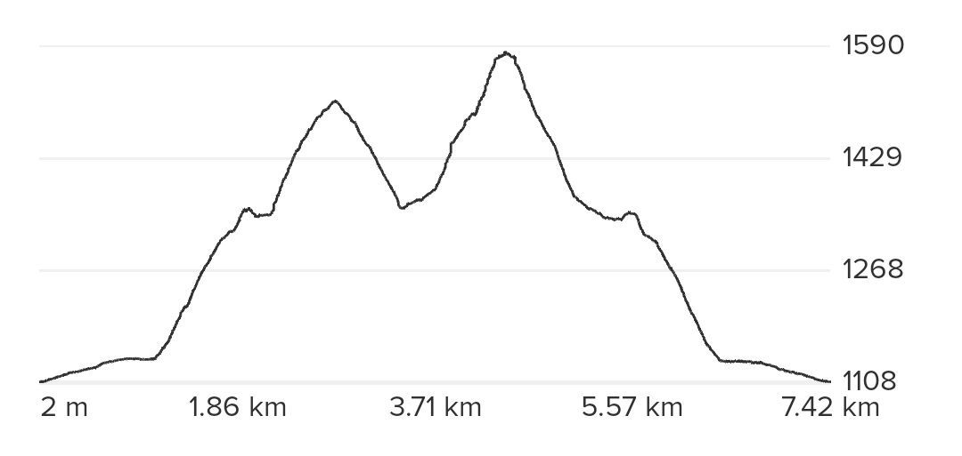 Desnivel acumulado: 678 metros, tanto de desnivel positivo como negativo.