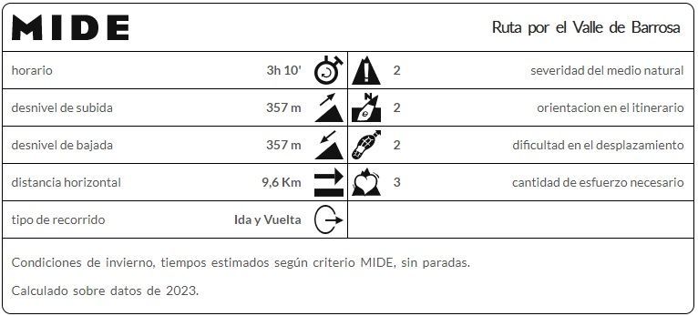 – Excursión de distancia moderada y desnivel escaso, sin grandes pendientes y muy cómoda para realizar con raquetas de nieve.