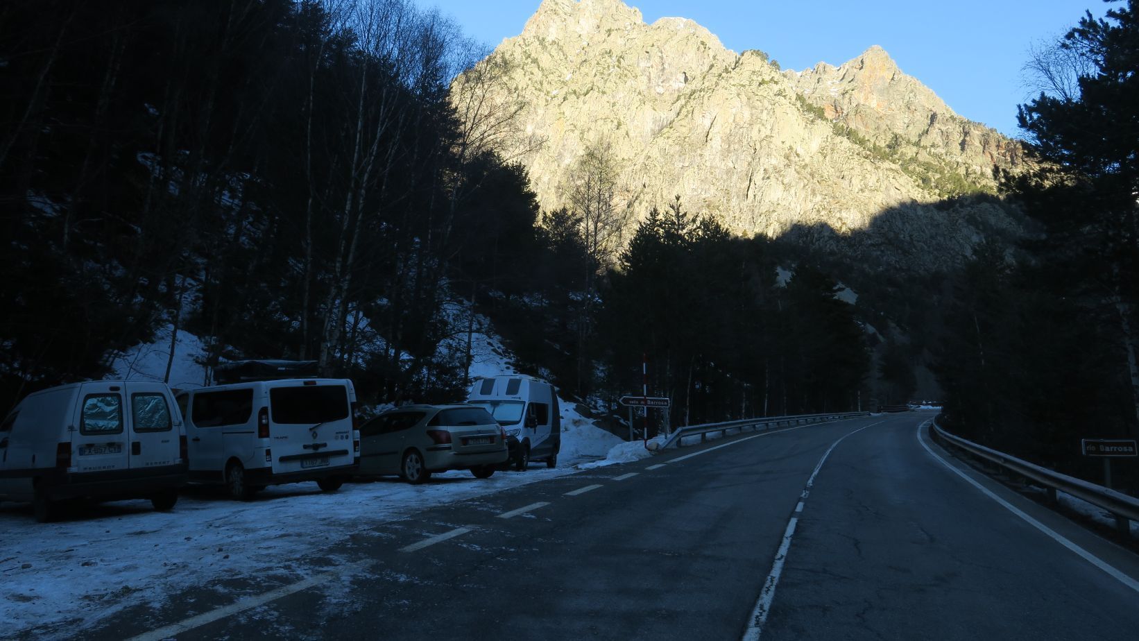 Para llegar al punto de partida es preciso conducir por la carretera A-138 y superar primero la población de Bielsa y, posteriormente, la de Parzán. Entre los kilómetros 88 y 89 de la carretera, a mano izquierda, hay un pequeño aparcamiento bien señalizado (Valle de Barrosa), donde pueden aparcar unos siete u ocho vehículos. En caso de encontrarse este aparcamiento lleno, hay otros dos tanto unas decenas de metros más arriba de la carretera como más abajo.