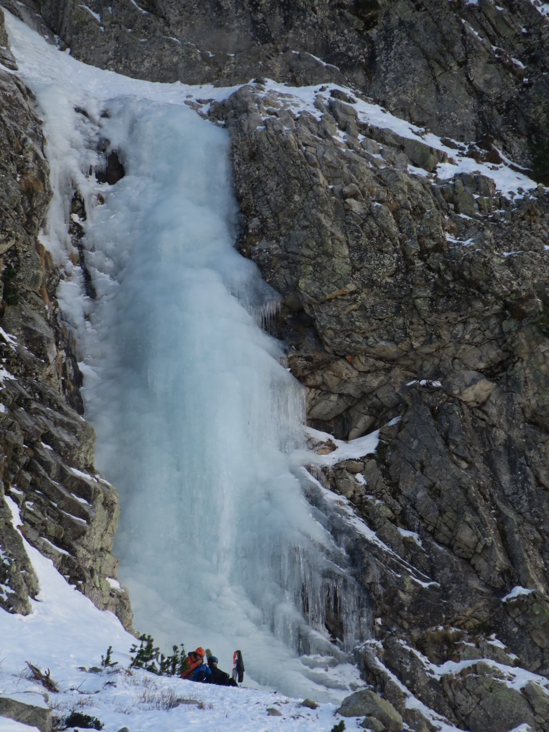 A nuestra izquierda, en lo alto, divisamos varias cascadas de hielo, en las que numerosos escaladores se ponen a prueba en esta fría mañana. Nos resulta fascinante observarlos, minúsculos, ascendiendo por el helado elemento.
