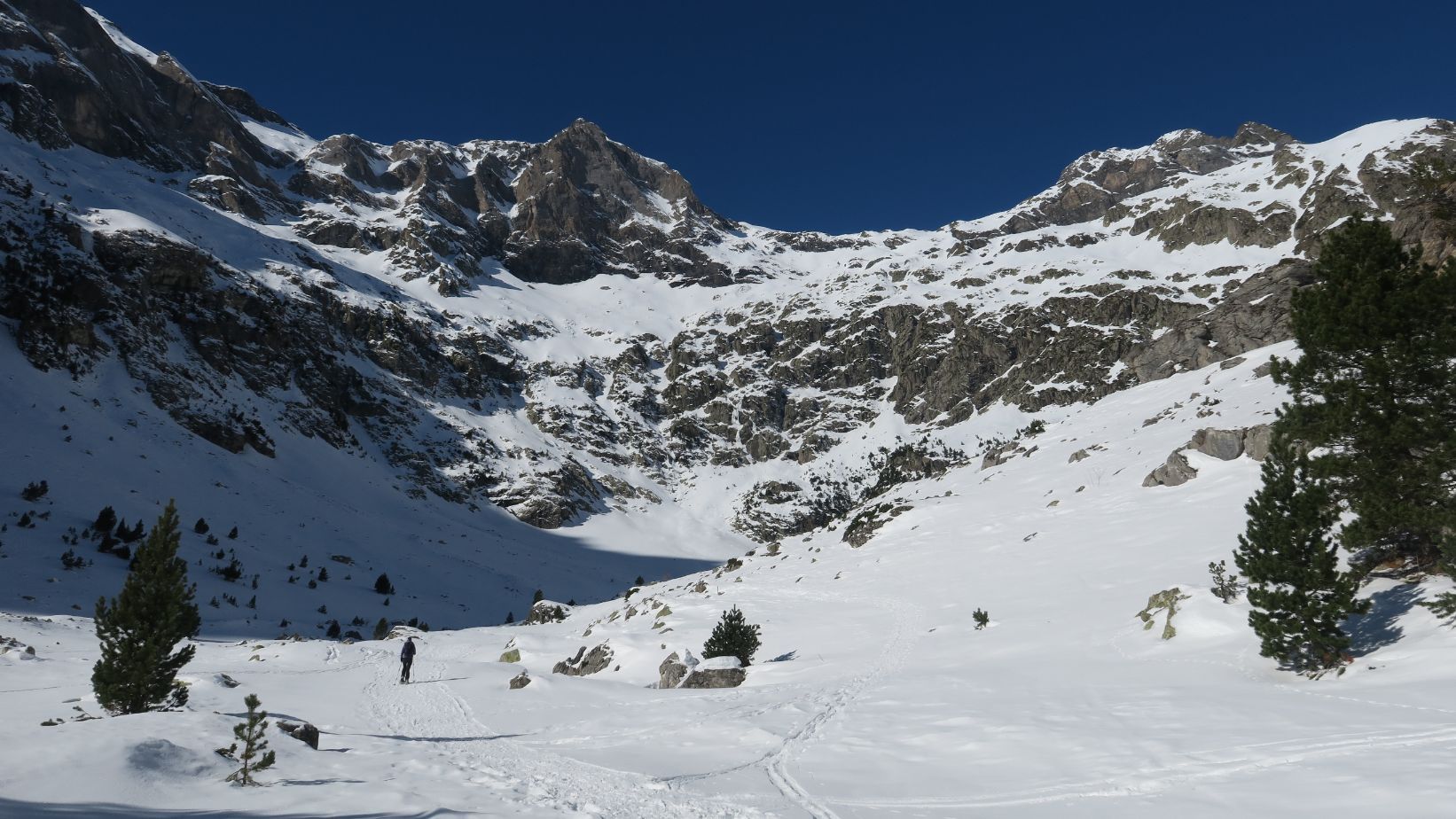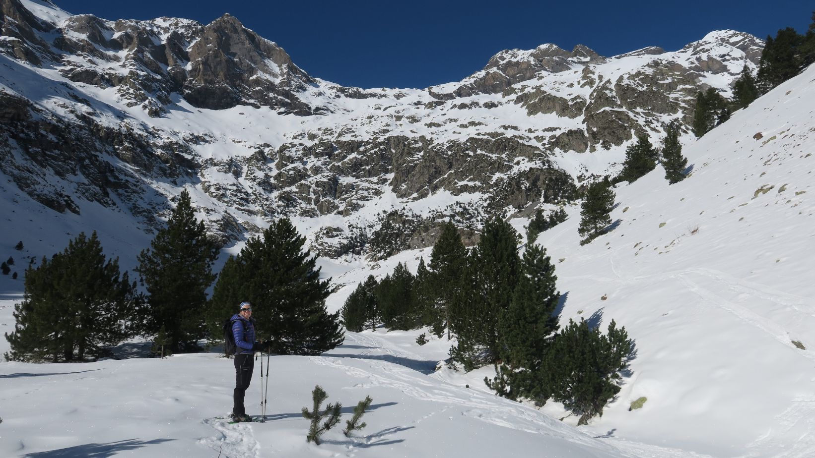 Ya con excelentes panorámicas continuamos caminando por la senda, que siempre tiene una ligera tendencia ascendente, alternando tramos más abiertos con otros en los que discurre por terreno arbolado. Atraviesa, eso sí, un par de puntos bajo canales avalanchosas, por lo que conviene informarse bien de las previsiones meteorológicas y del riesgo de aludes para evitar la exposición a los mismos en los días de mayor riesgo.