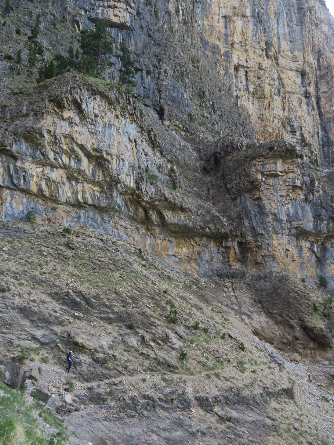 Nuestro camino cada vez se encajona más bajo esas grandes paredes. ¡Parece imposible que vayamos a caminar por ahí!