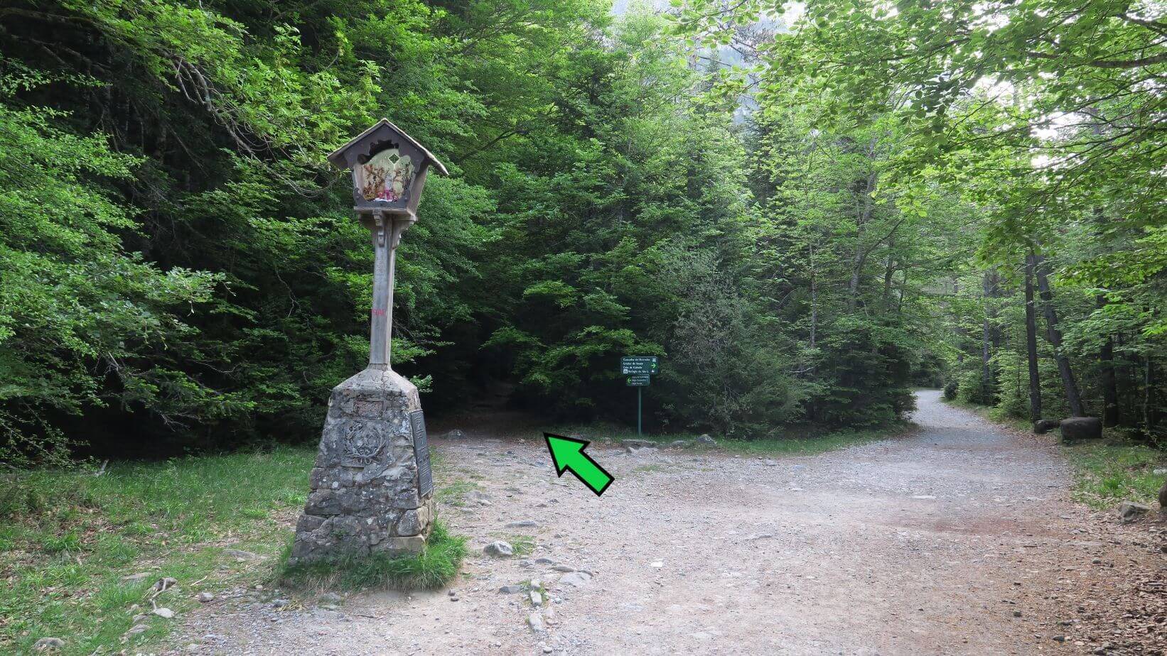 Llegamos a la Pradera de Ordesa y nos preparamos para la ruta. Comenzamos a caminar por el transitado camino principal del valle, en dirección al fondo del mismo. Sin embargo, en pocos minutos llegamos a la pequeña estatua de la Virgen del Pilar, junto a la cual se halla el desvío que debemos tomar hacia la izquierda (Circo de Cotatuero – Faja Canarellos – Faja Racón).