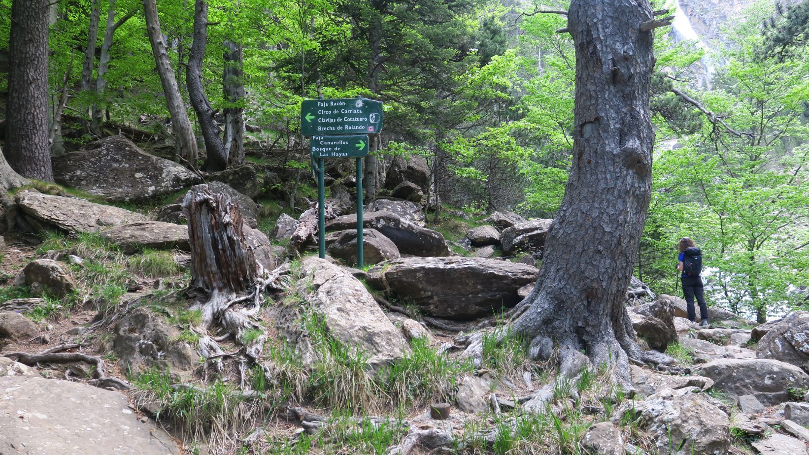 Cruzamos a la margen izquierda del Río Arazas por el Puente de Arripas, con la intención de recorrer el último tramo hasta la Pradera de Ordesa por su parte más tranquila, lejos del ajetreo del camino principal. Así, pronto llegamos al hermoso tramo boscoso por el que discurre el sendero accesible.