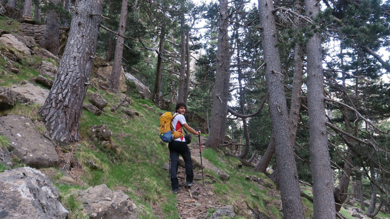 Pronto la senda vira para poner rumbo sur, por un tramo de pinar poco frondoso, y que ya deja entrever la grandiosidad del valle desde las alturas.