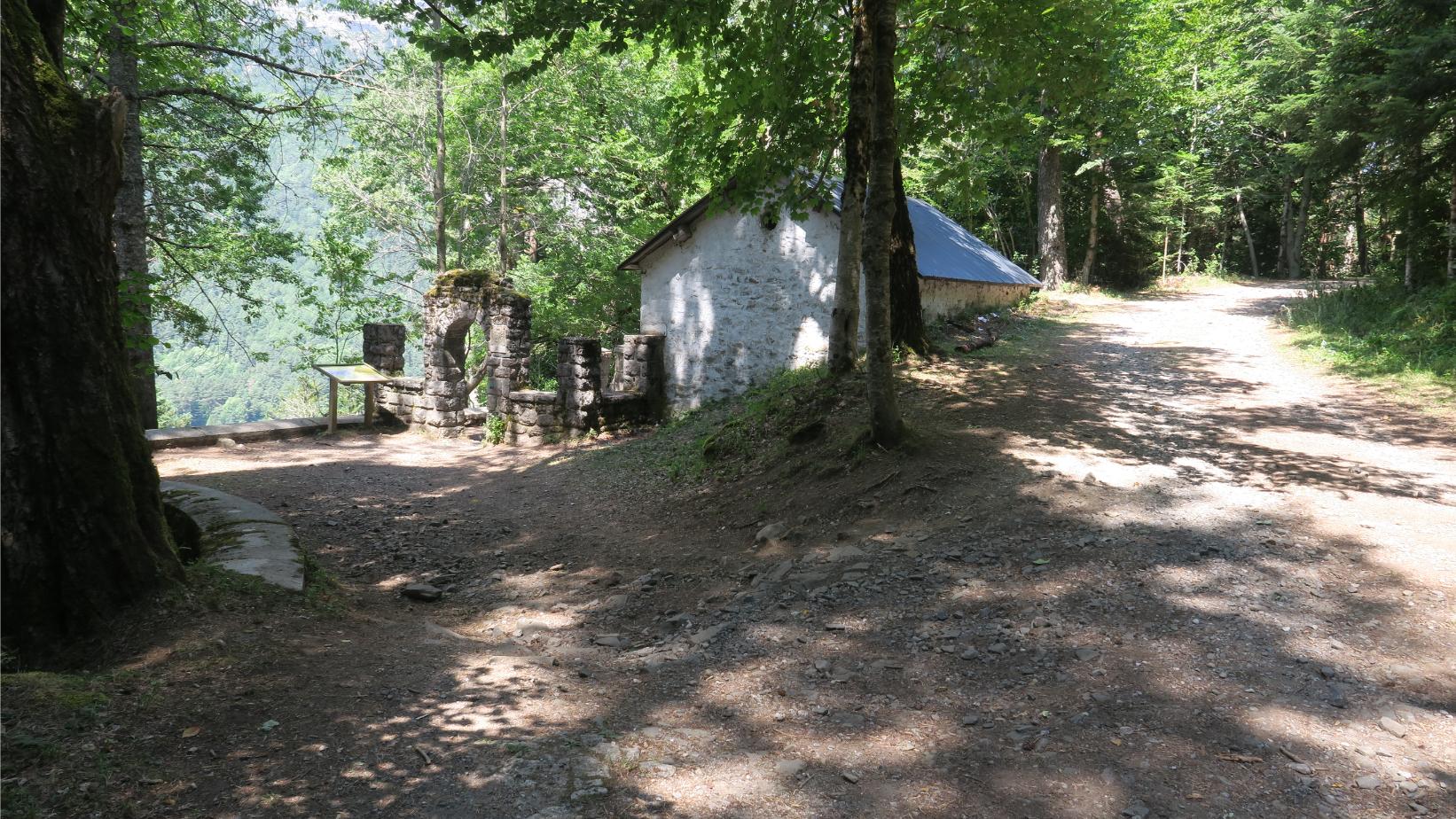 Dejamos atrás el barranco y seguimos caminando, a ritmo pausado, por la sombría pista que nos deposita, pronto, en la Caseta Blanca (2,10 km; 40 minutos; 1322 metros). Esta pequeña edificación fue, en su época, uno de los viveros donde crecían los árboles que posteriormente se plantaron en las laderas del valle para protegerlo de los frecuentes aludes.