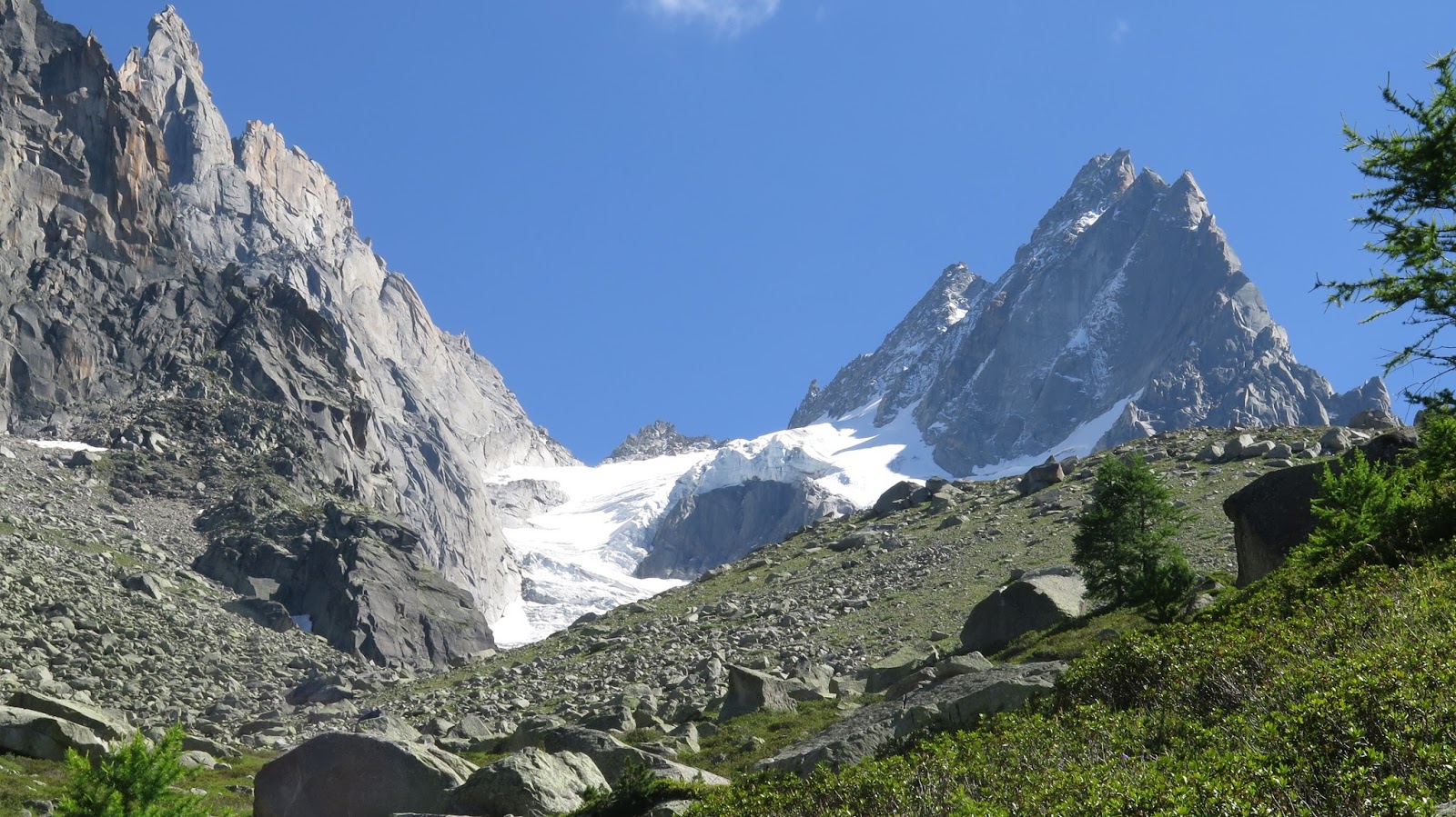 | El Glacier de Baltière se abre paso entre las afiladas agujas. |
