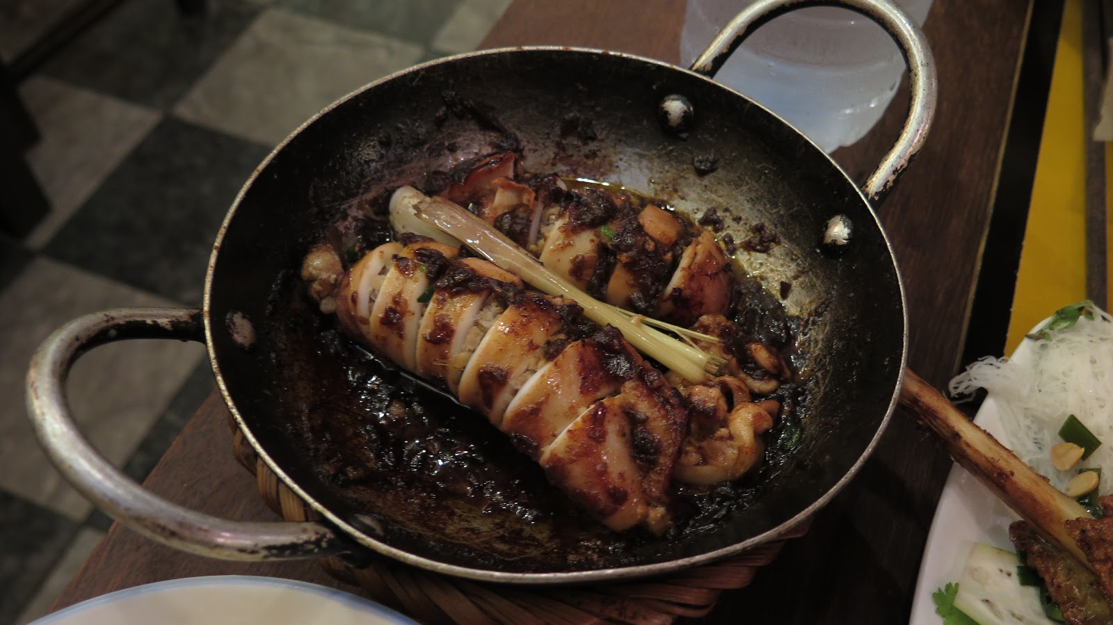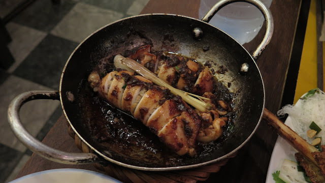 Cenamos en el restaurante Morning Glory, con cierta fama en la ciudad. El calamar relleno de gambas y cerdo y los stir fried rolls de gambas nos encantaron.