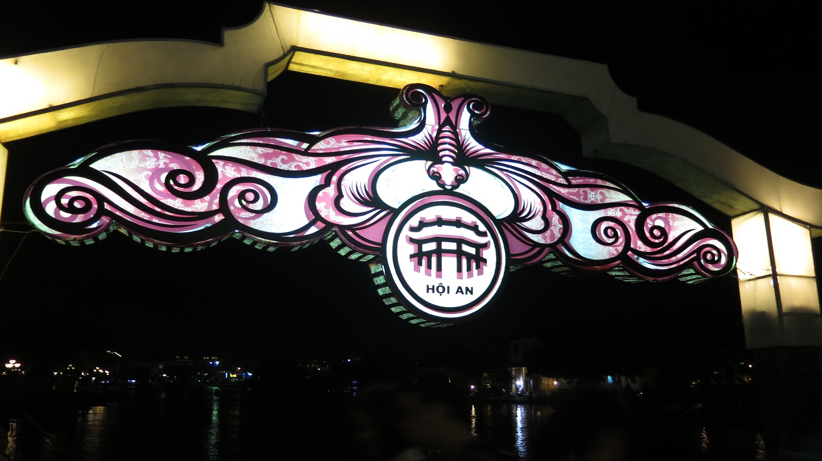 | El famoso cartel en el puente sobre el río Thu Bon. |