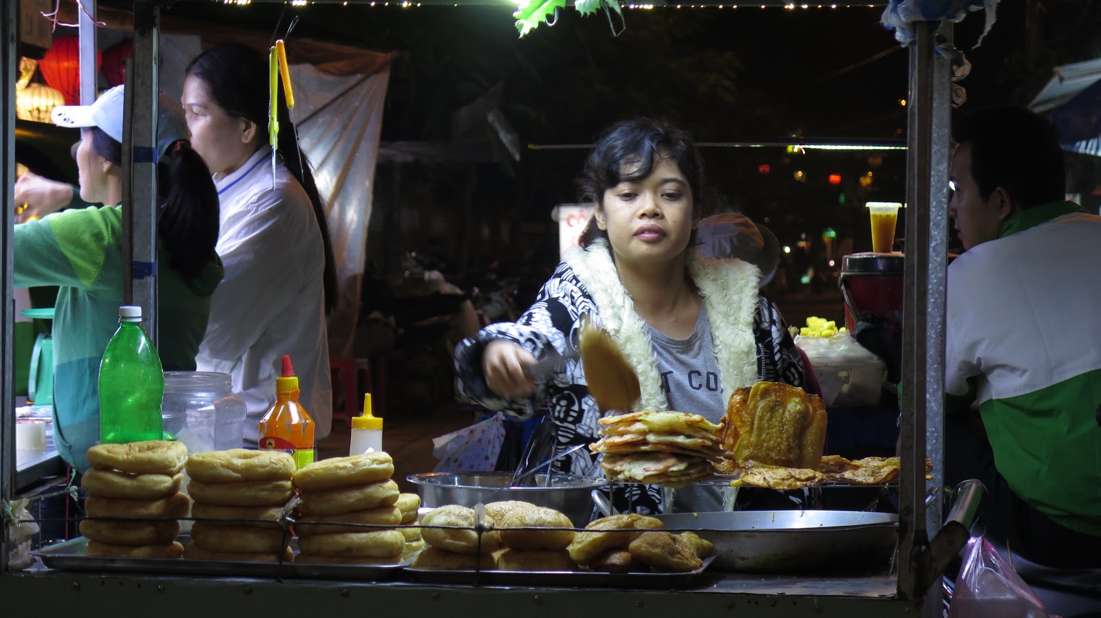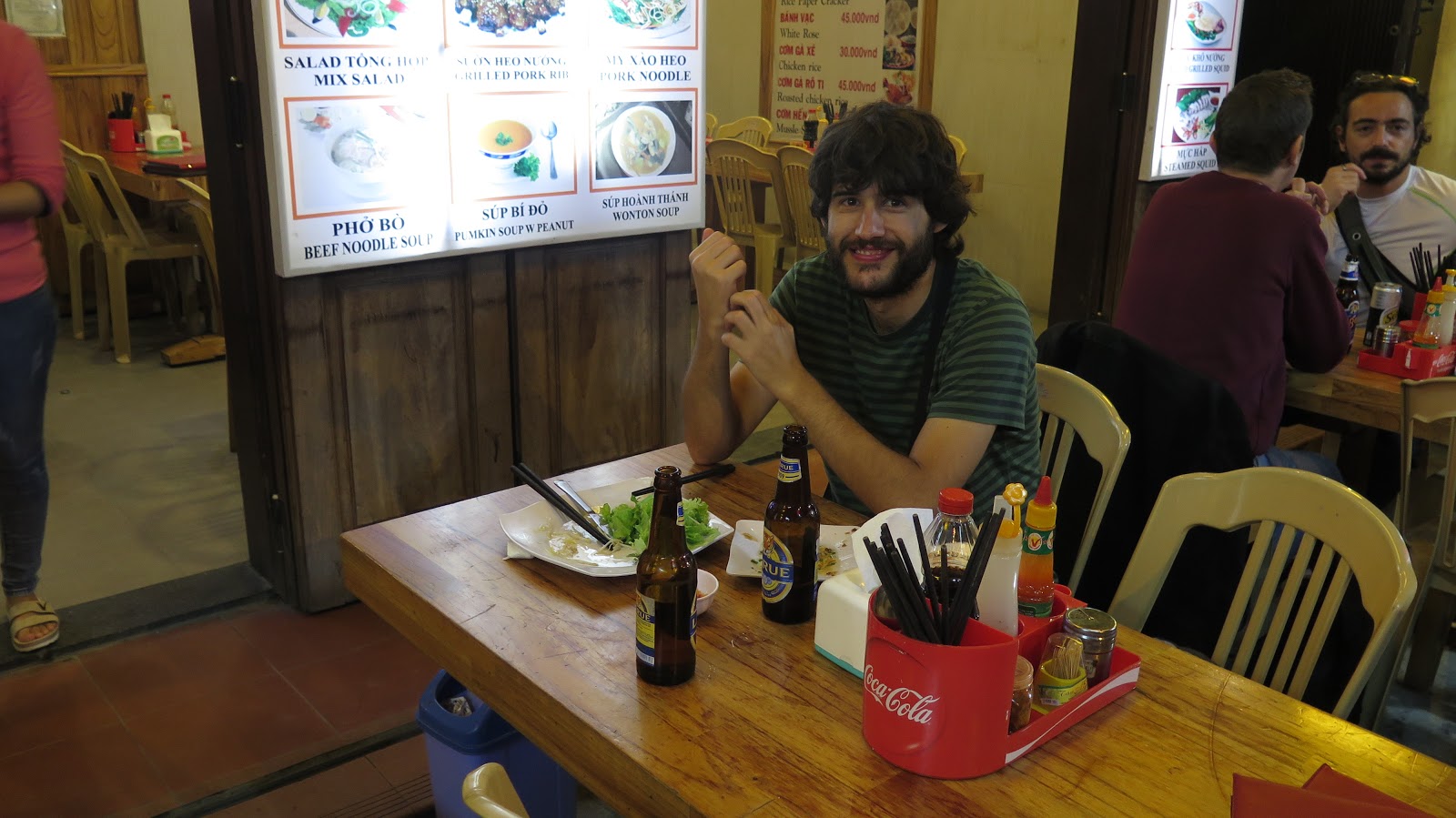 | Disfrutando de la comida vietnamita en un restaurante cercano al mercado nocturno. |