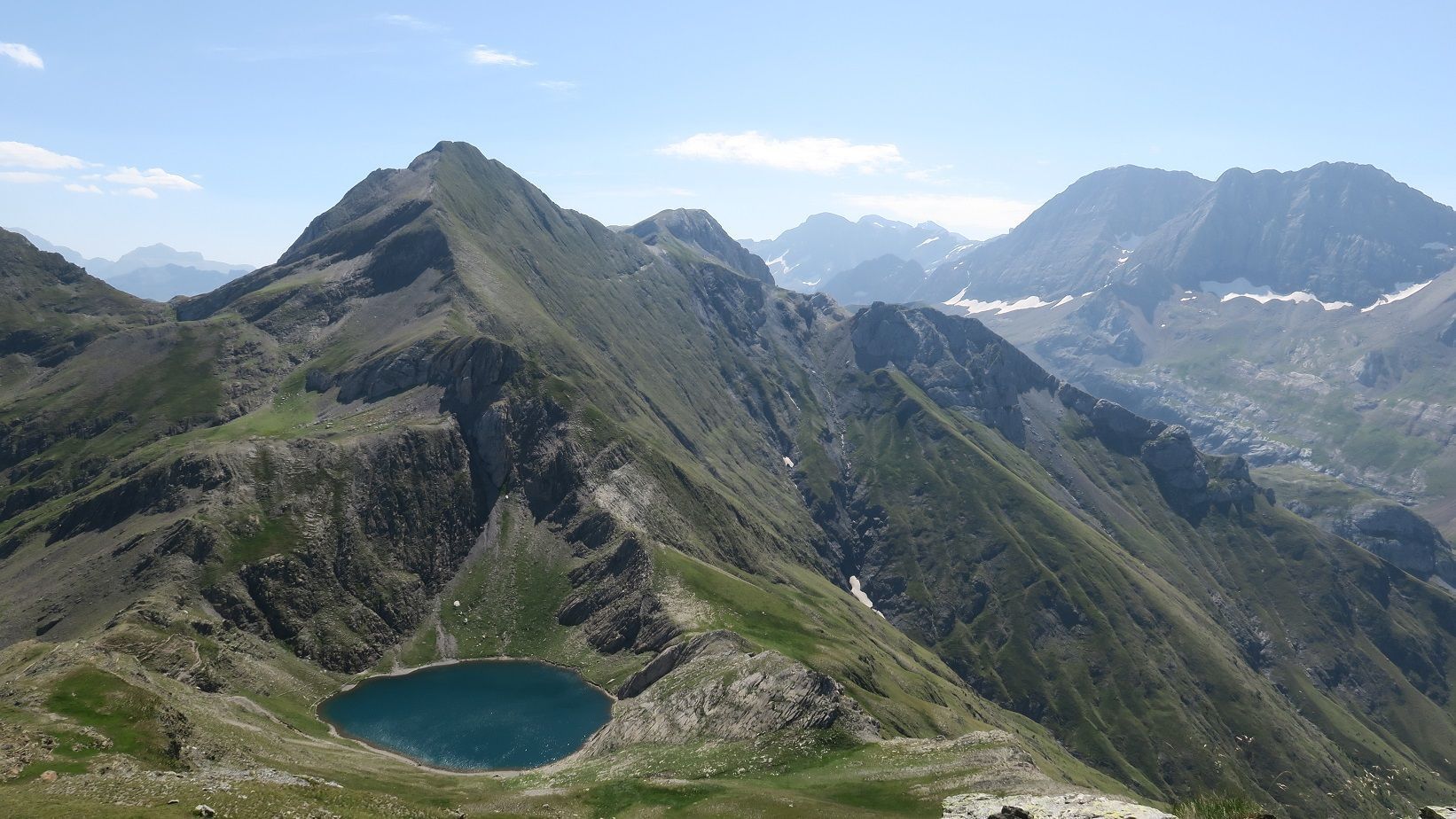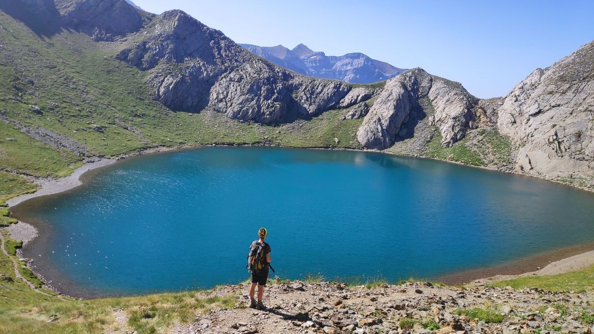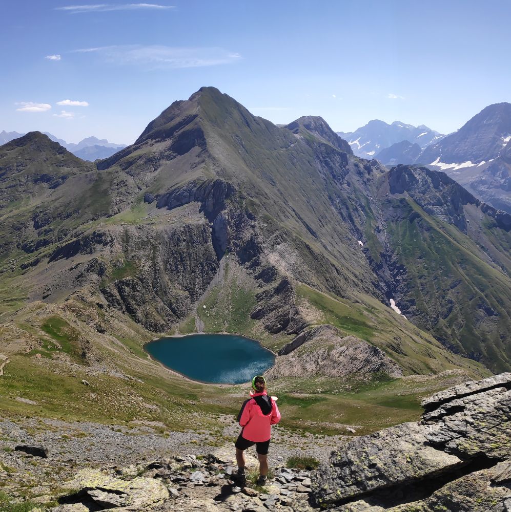 Y, a nuestros pies, el bucólico Ibón de Bernatuara, estampa de postal desde esta cumbre.