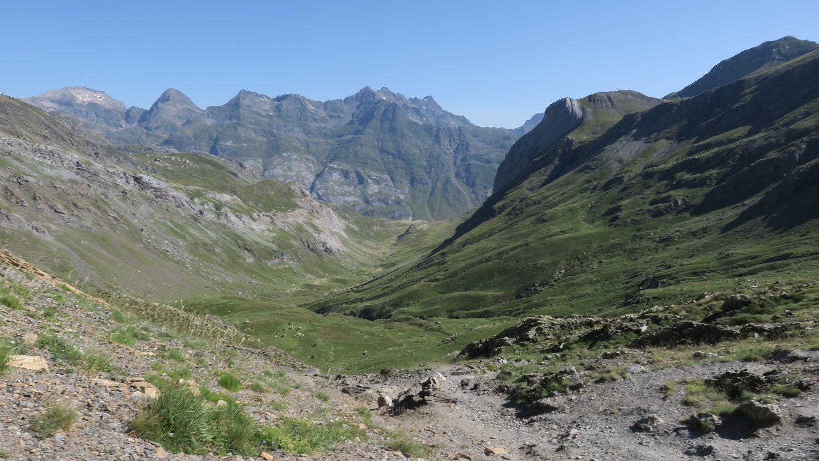 Vamos ganando altitud y, por ende, vistas en todas las direcciones. Pronto comienzan a asomar los primeros tresmiles, los Gabietos y el Taillon, que ya insinúa parte de su abrupta cara norte.