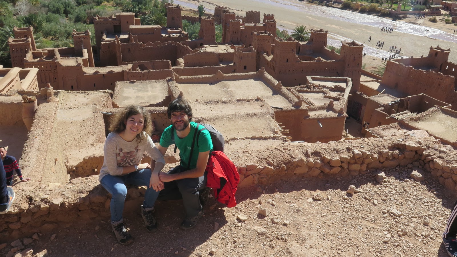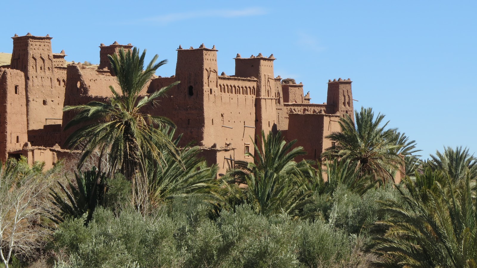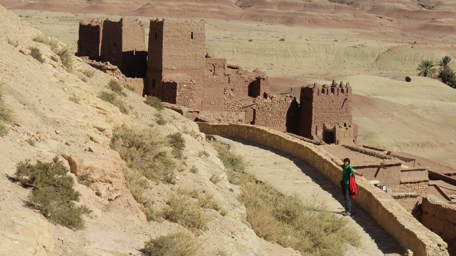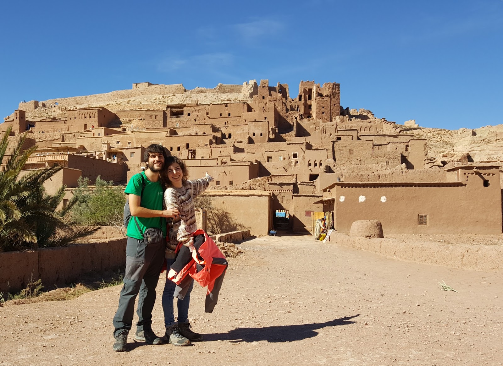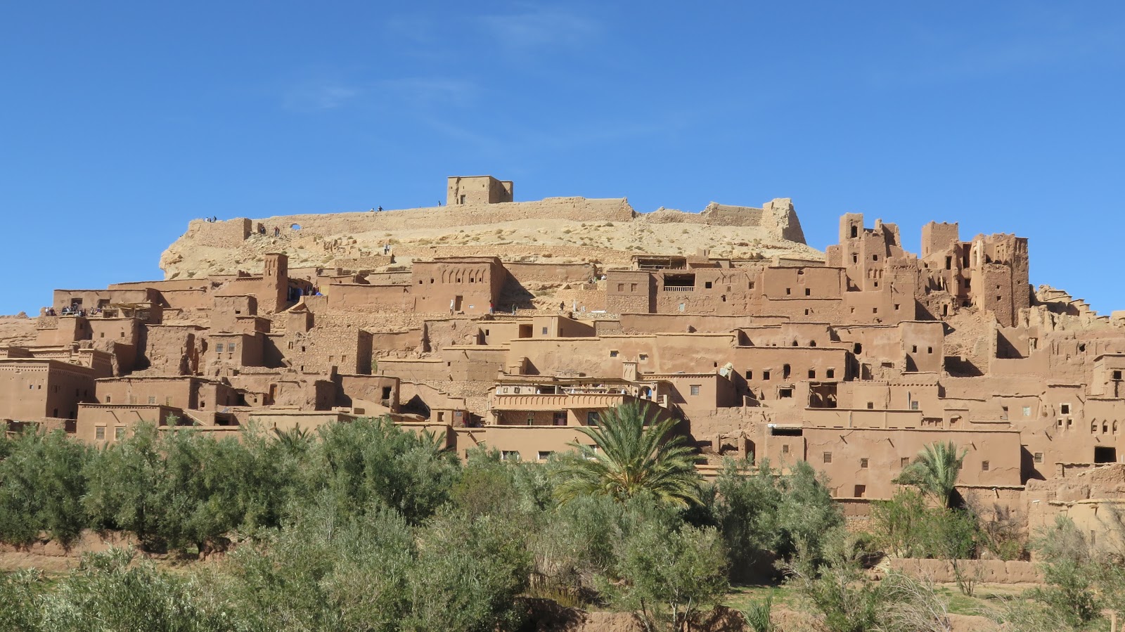 Descendemos el larguísimo puerto de montaña y continuamos la ruta hasta llegar al kasbah (recinto fortificado) de Ait Ben Haddou. Se trata de un ksar (conjunto de casas de adobe) situado en la antigua ruta de las caravanas de camellos que unía Marrakech con África Central. Sus casas y callejuelas de adobe se construyeron en el siglo XVII, aunque su historia se remonta hasta hace más de 1000 años. Es el kasbah mejor conservado de Marruecos, y fue nombrado Patrimonio de la Humanidad por la UNESCO en 1987. Debido a su configuración y localización, ha sido lugar de rodaje de incontables películas, entre las que destacan Gladiator, La Momia, Lawrence de Arabia y El Reino de los Cielos; así como parte de la serie Juego de Tronos.