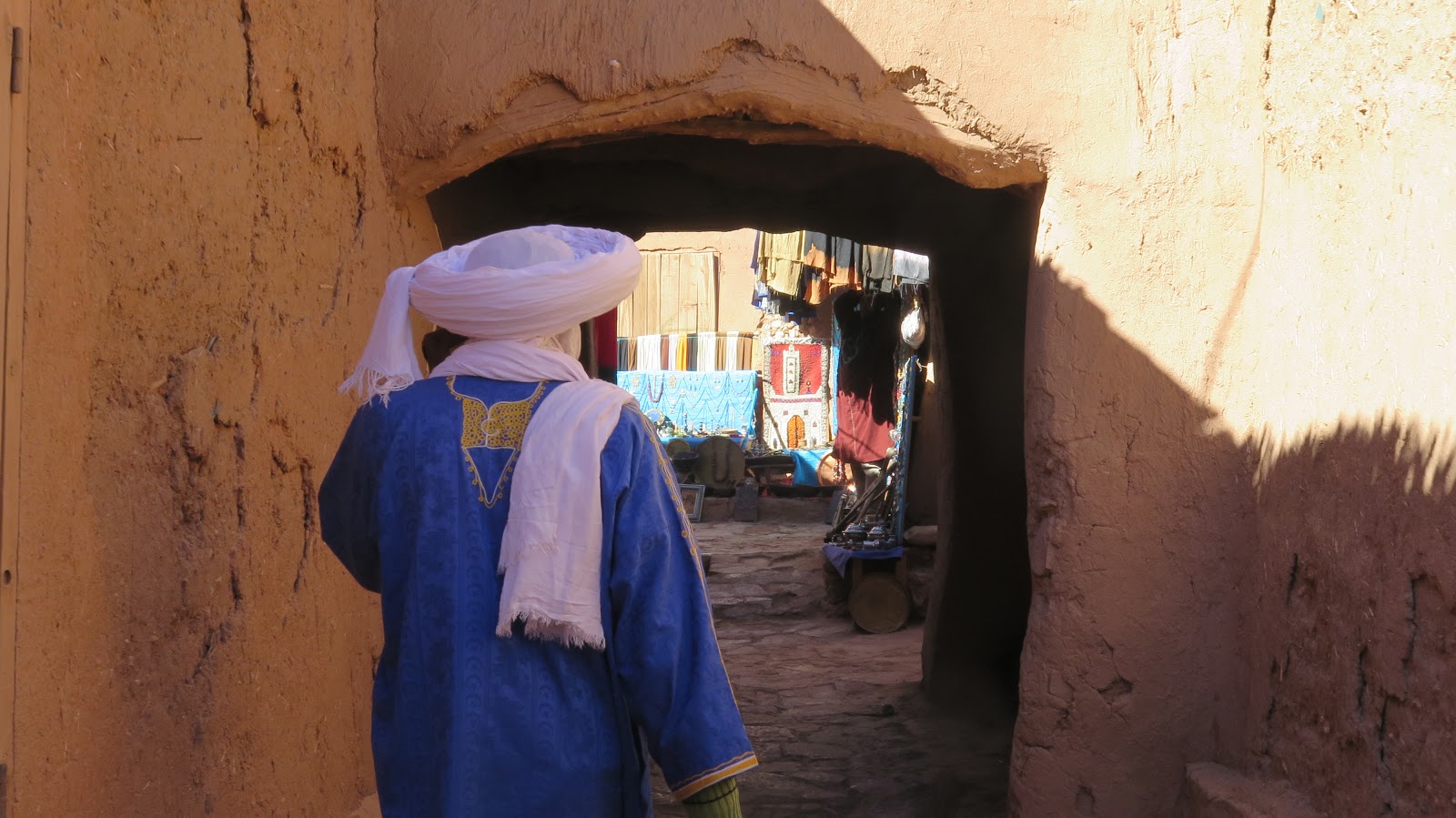Un guía local, con un colorido vestido bereber, nos muestra algunas de sus calles y nos cuenta datos curiosos sobre la ciudad, en la cual todavía viven algunas familias (la mayor parte se han trasladado a la ciudad nueva, en la otra orilla del río). Por ejemplo, algunas de las puertas de acceso al recinto fueron construidas expresamente para las películas, no son originales de la ciudad.
