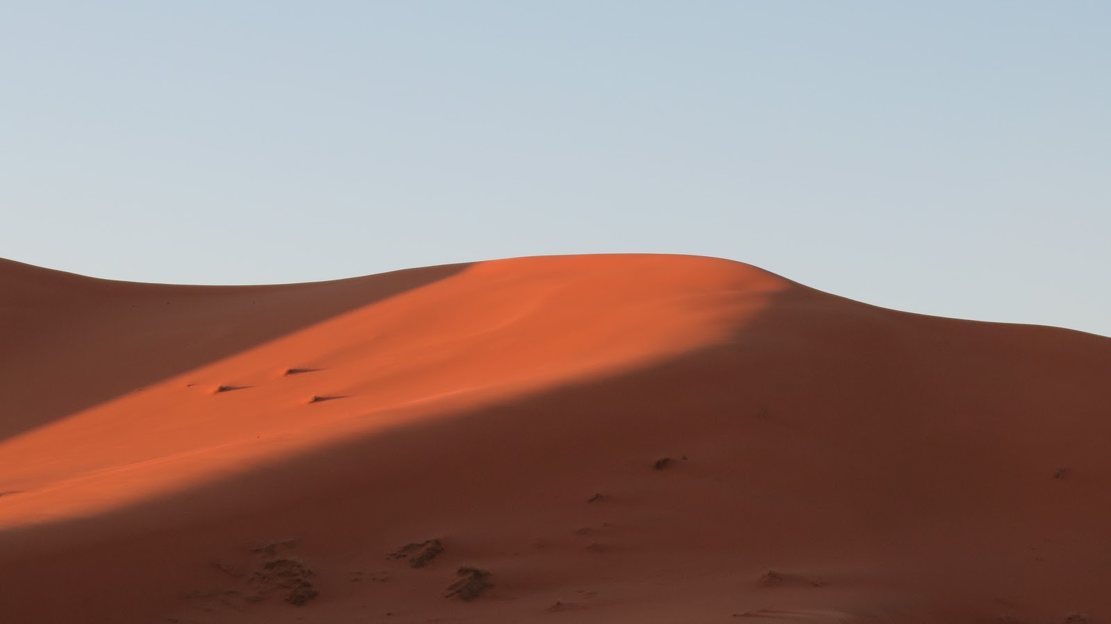 Con un mar de arena que nos rodea en todas las direcciones, comenzamos a tomar fotografías mientras el sol cae en el horizonte lentamente. El dorado de las dunas adquiere, progresivamente, una tonalidad rojiza, preciosa. ¡Qué hermoso!