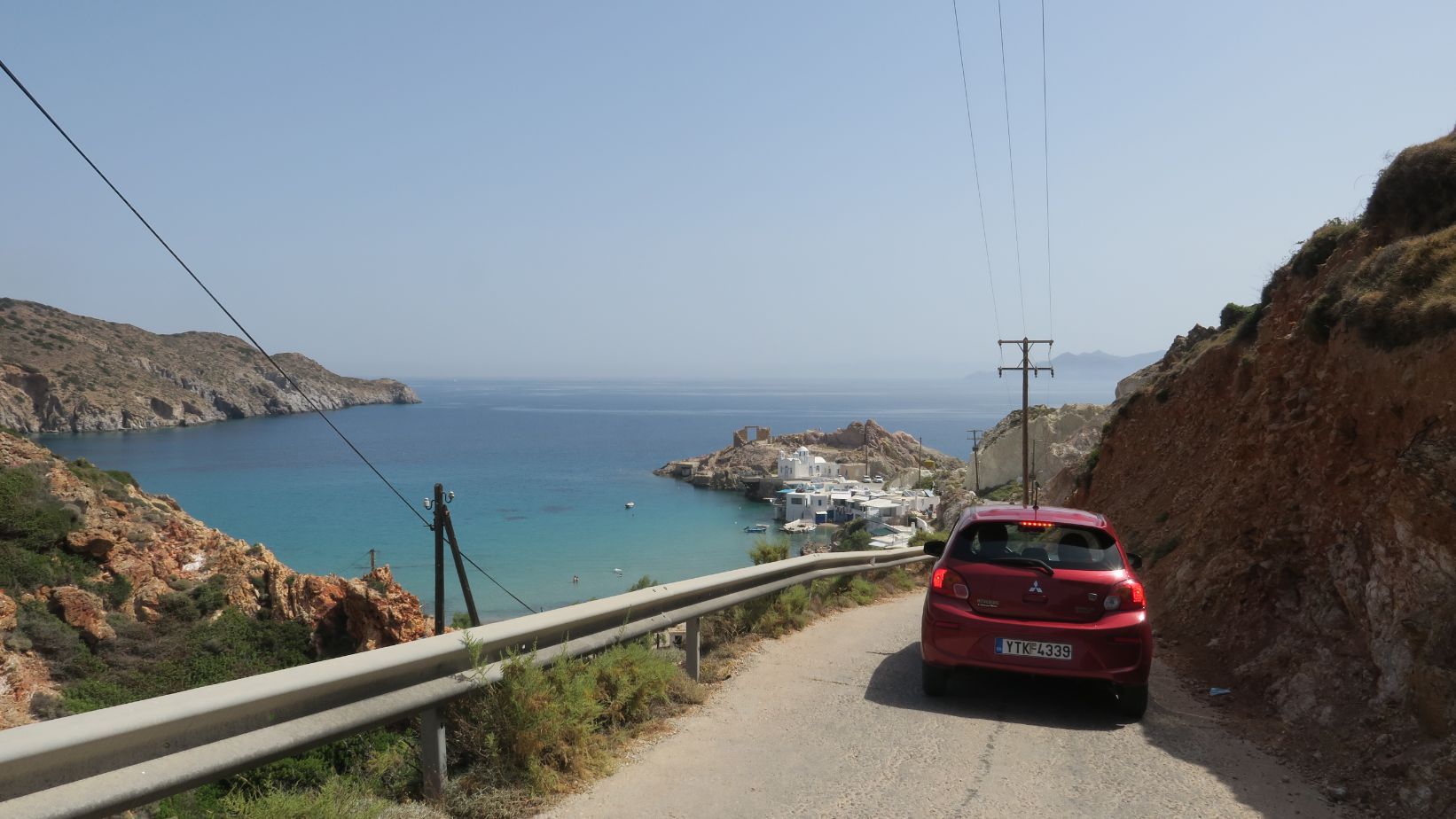 Han sido casi cuatro horas de trayecto en ferry desde Atenas hasta aquí, el Puerto de Milos, en la localidad de Adamas. Salimos del puerto, abarrotado cada vez que llega un barco, y vamos caminando hasta la empresa de alquiler de coches, situada a unos trescientos metros de allí.