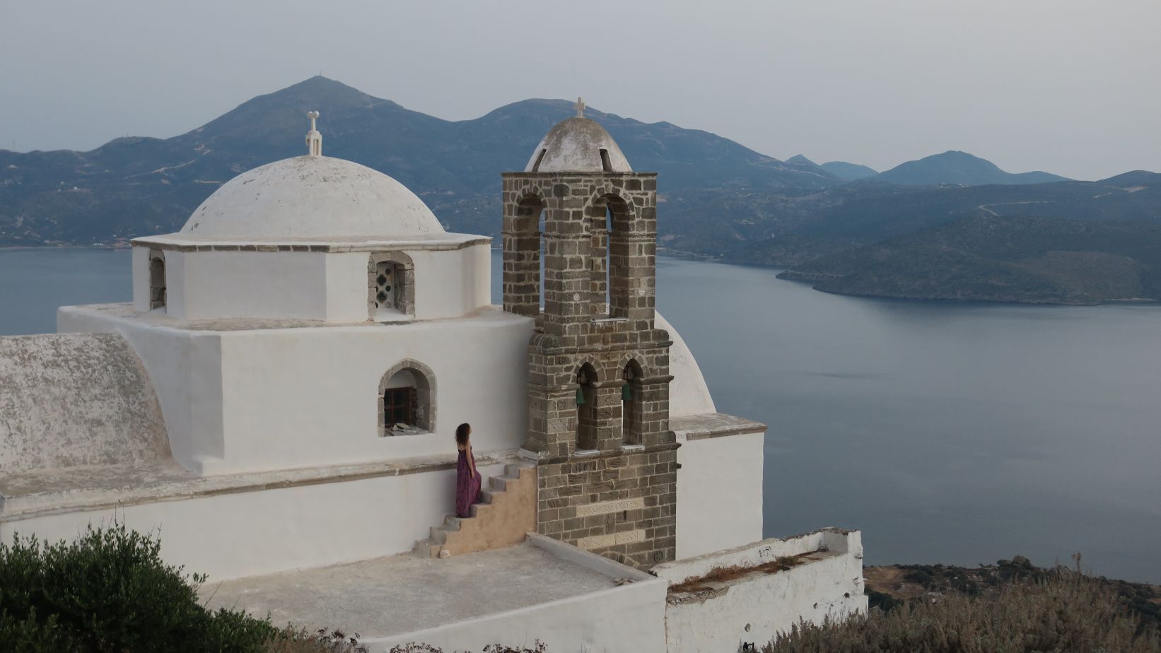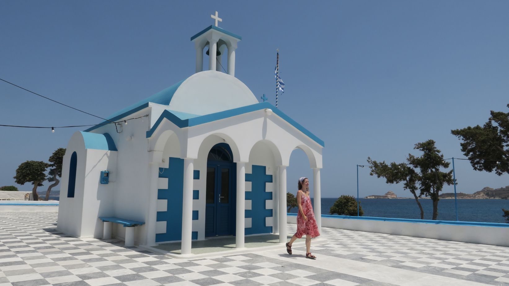 – Iglesia Agios Nikolaos: posiblemente la más pintoresca de la isla, con sus característicos tonos azules y blancos. Se halla en la población de Pollonia, en el cabo más septentrional de la isla. La perfecta definición de “fotogénica”.