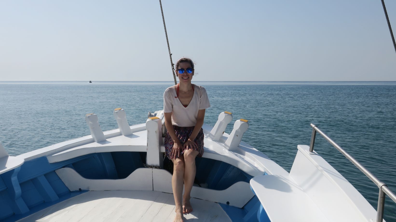 Puntuales montamos en el barco, tan solo seis viajeros, por lo que el viaje va a ser más cómodo.