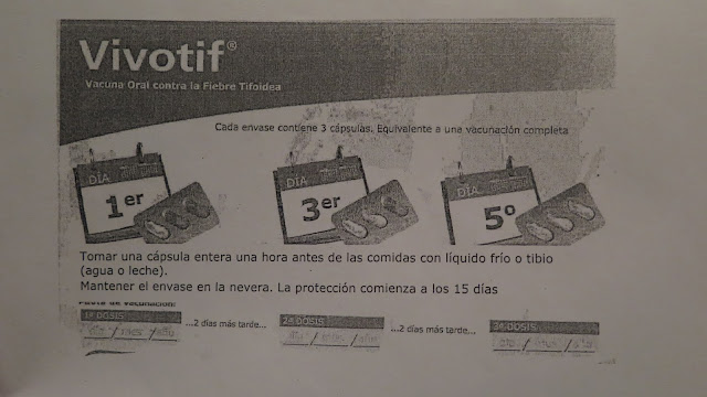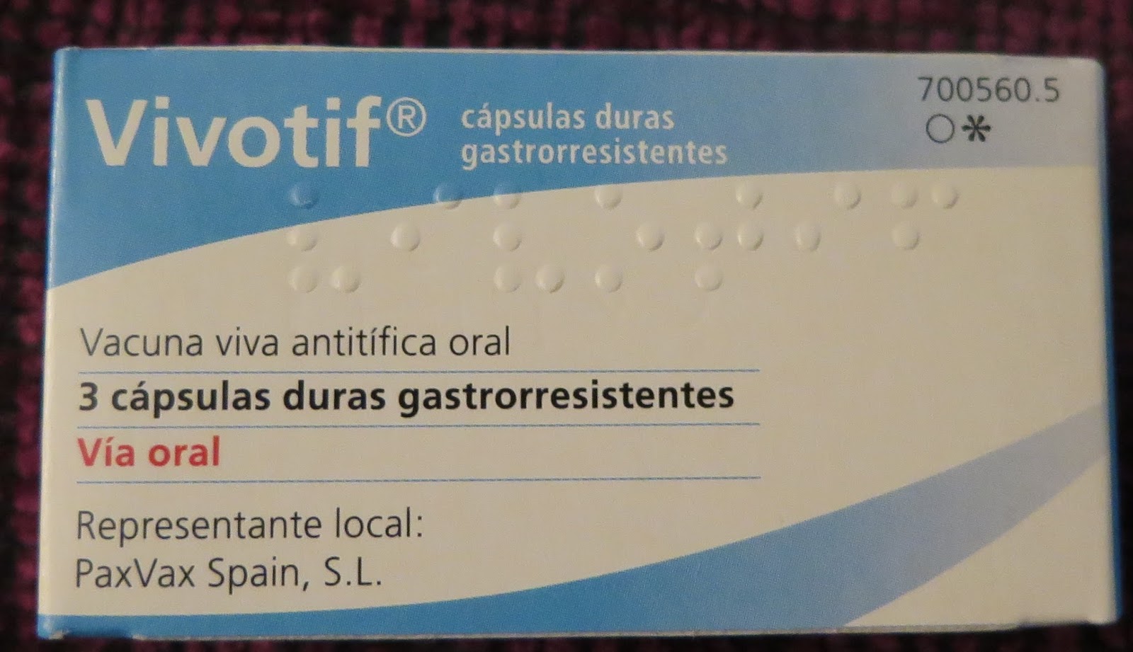 Fiebre tifoidea: existe la opción parenteral, que debe administrarse al menos 14 días antes del viaje; y la opción oral (Vivotif), cuyo inicio de protección es algo más rápido (en torno a los 7 días). De esta última debemos tomar 3 cápsulas, separadas 48 horas entre ellas.