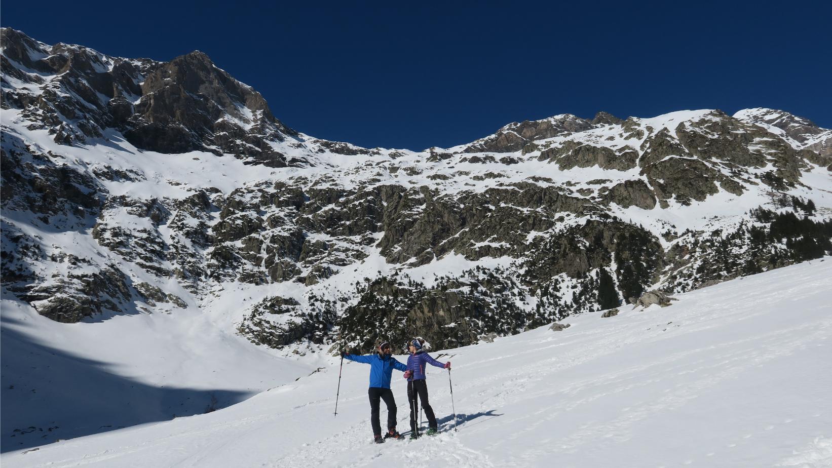 Nos saludaste tranquilo, con un invierno de escasas nieves contemplado desde las alturas de Pineta, aunque pronto te cubriste con ese hermoso manto blanco y nos permitiste exprimirte a fondo, acompañados de nuestras raquetas de nieve. Así, descubrimos el Valle del Barrosa y regresamos al siempre espectacular Forau d’Aiguallut, disfrutando también de sencillas excursiones por el Valle de Benasque, como la de las Tres Cascadas de Cerler, las Gorgas de Alba, la Ruta de los Tres Barrancos o el magnífico día en que llegamos al Ibón de Coll de Toro.