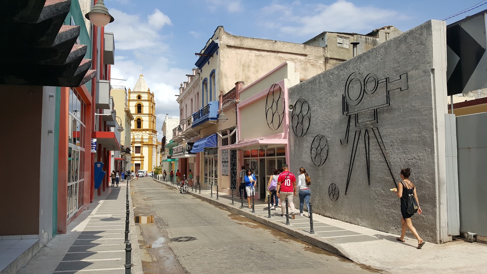 Nuestro siguiente destino es la Calle Agramonte, reconvertida en los últimos años en una calle de homenaje al cine. Aunque la cartelera no es (ni mucho menos) interesante, intentamos entrar a alguno, pero todos se hallan cerrados. Aprovechamos, entonces, para comer una rica pizza en el restaurante Isabella, decorado con motivos cinematográficos.