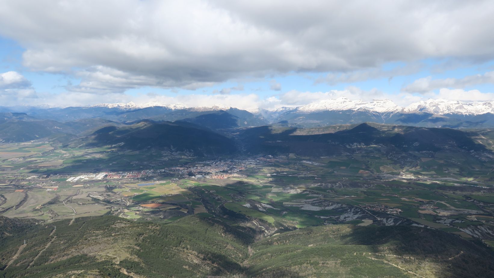 Espectacular panorámica en todas las direcciones. Si bien no estamos a una gran altitud, la gran prominencia de esta montaña le permite erigirse como un grandioso mirador. A nuestros pies la localidad de Jaca y la Val Ancha. Más allá la Canal de Berdún, y la entrada al Valle del Aragón, casi diminuto desde este punto. De fondo, una miríada de cumbres nevadas, que van desde el Bisaurín hasta la Peña Montañesa, casi perdida en el horizonte. Collarada (y Collaradeta), Sabocos, Tendeñera, las cumbres de Ordesa… y otros tantos más que juegan a esconderse tras las nubes.