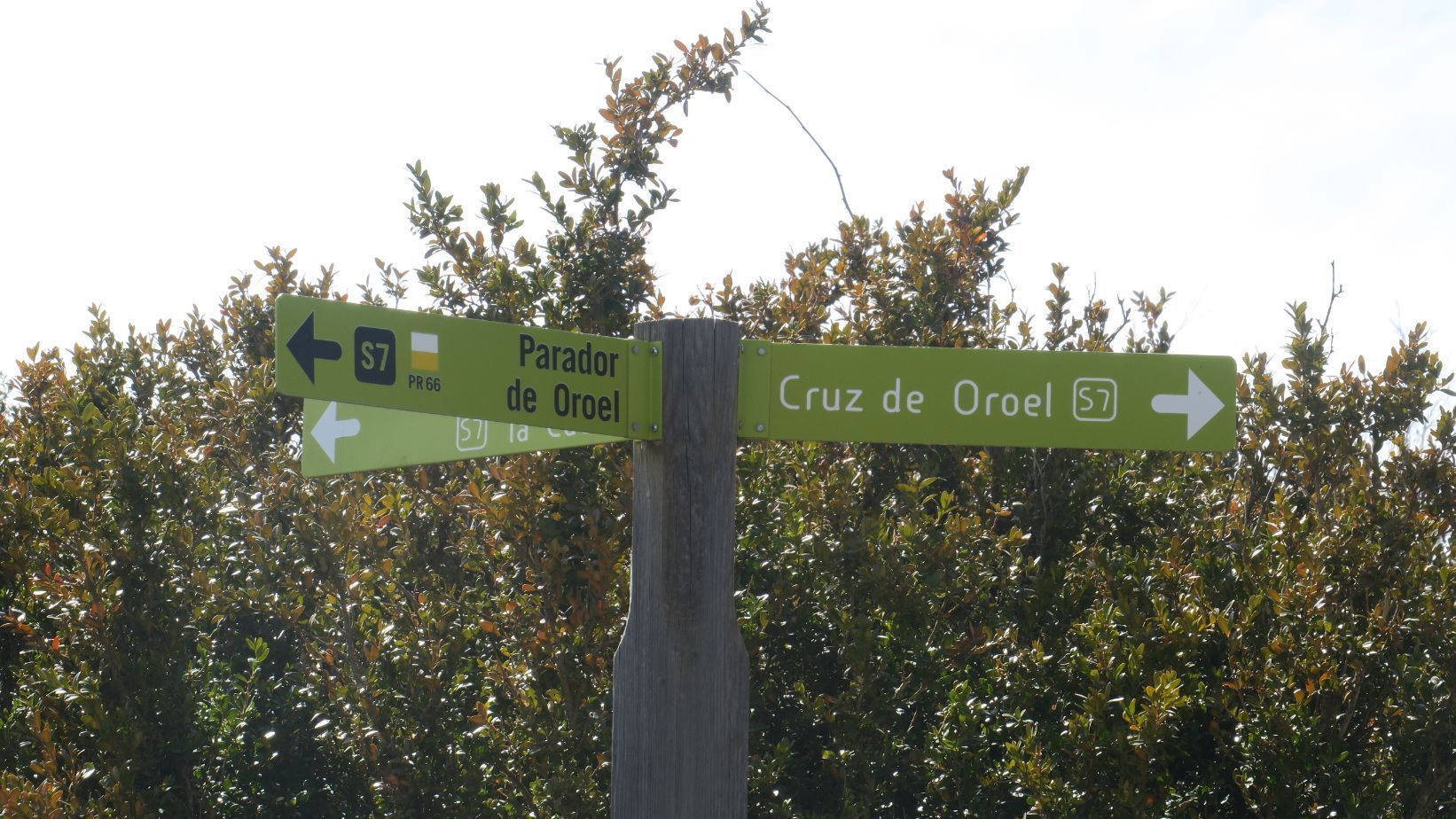 Periódicamente vemos algunos pequeños carteles con información bastante didáctica sobre la vegetación y el entorno en que nos encontramos; además, de vez en cuando unos carteles de madera nos confirman que vamos en la dirección adecuada (PR-66, “Cruz”).